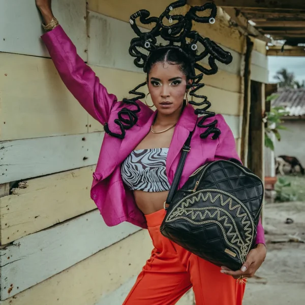 NOIR QUILT GOLD CHAIN SHARK SAVAGE BACKPACK