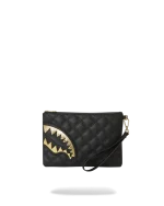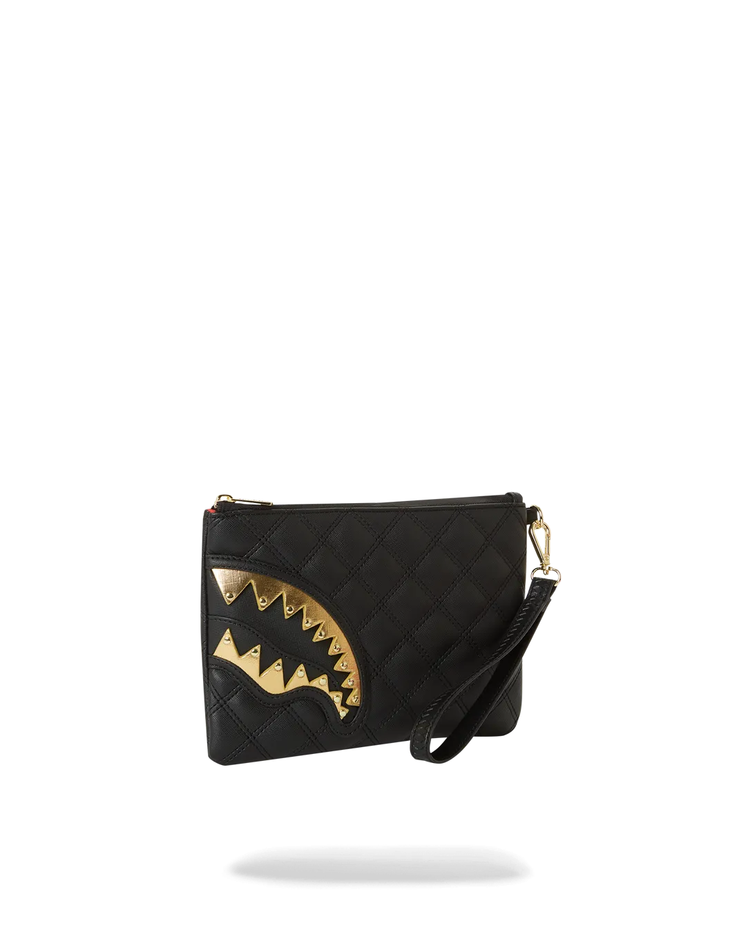 Sophisticated quilted faux leather collection. Accented with metallic gold shark mouths and nail head hardware details.