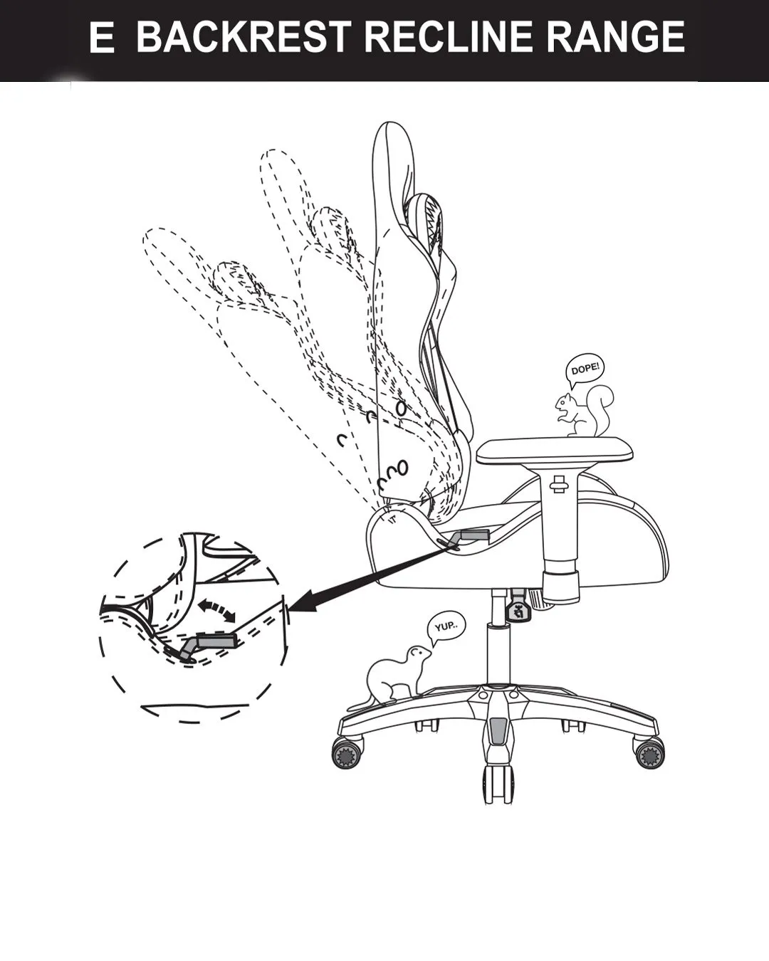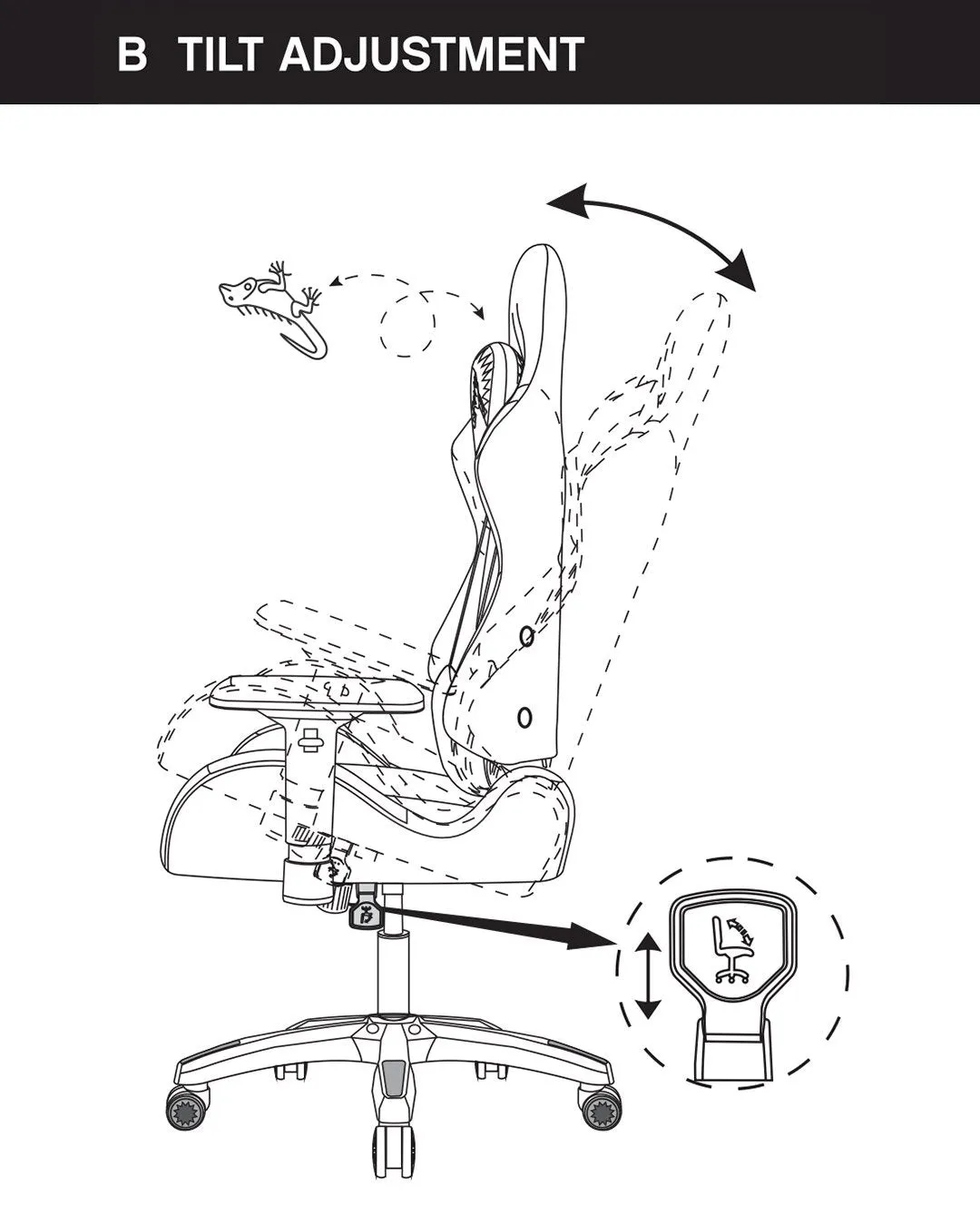 - Supports up to 145 degrees of recline, tilt tension control, and a tilt lock feature.