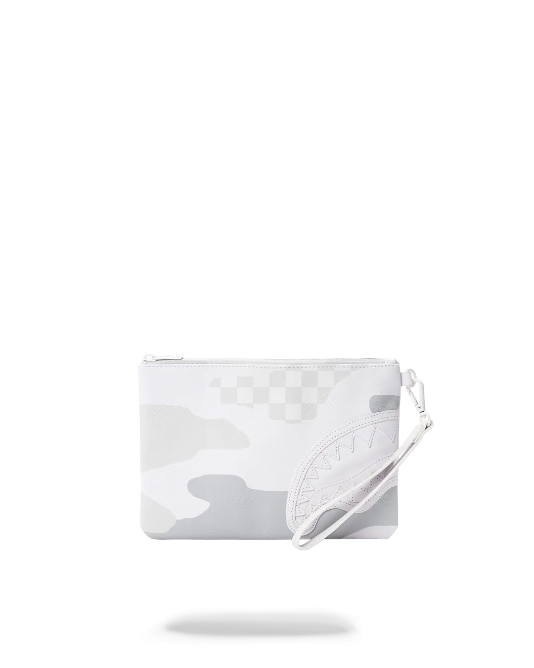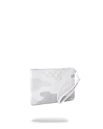 Pouch with removable wristlet strap, Handle on front panel, Zip Closure, secret stash pocket on side seam