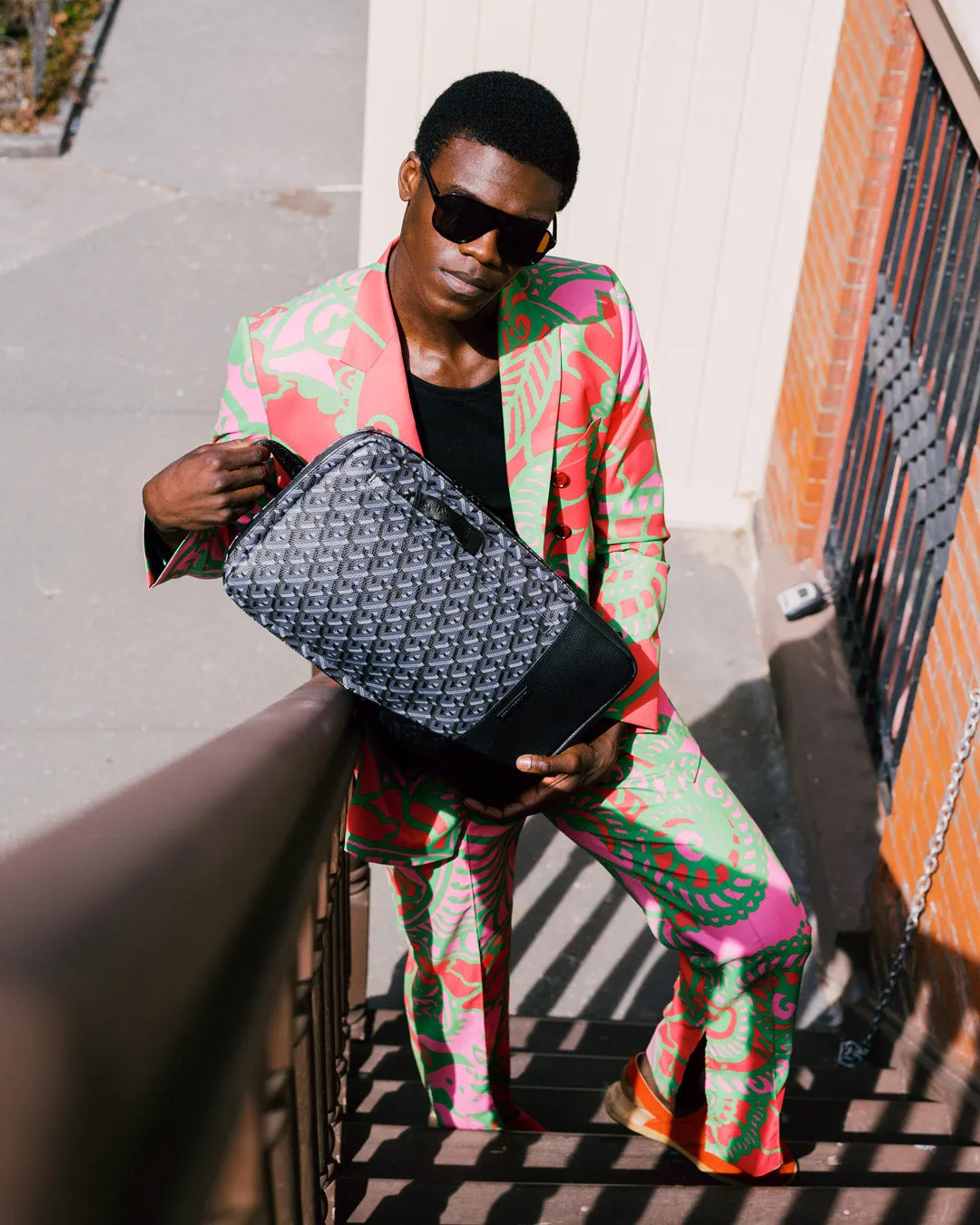 Ergonomic mesh back padding, Whip stitch detailing, adjustable straps, 2 exterior pockets, features a whip stitch luggage tag, embossed zipper pulls