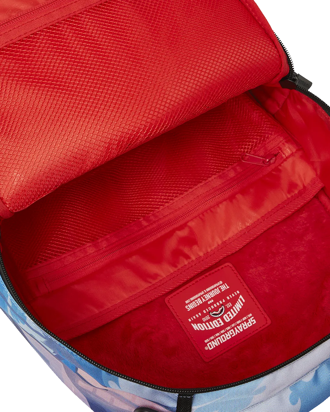 Dimensions: 18″ x 6″ x 11.5″ ? Front zipper pocket ? Side pockets ? Zippered Stash pocket ? Separate velour sunglass compartment ? Ergonomic mesh back padding ? Adjustable Straps for custom sizing ? Gold zippers with metal hardware ? Metal “Sprayground Authentic” badge ? Slide through back sleeve connects to carry-on luggage to free your hands