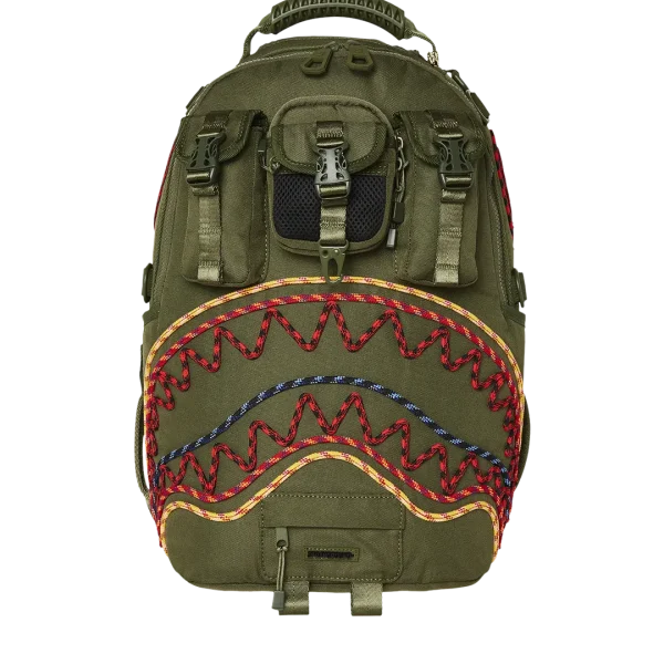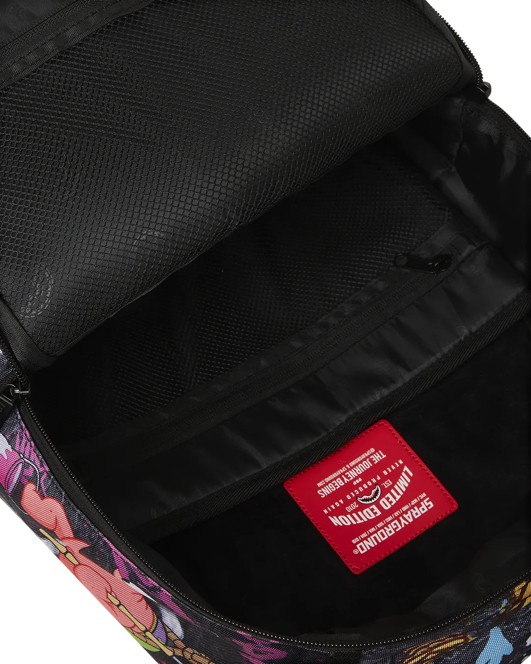 Dimensions: 18″ x 6″ x 11.5″ ? Front zipper pocket ? Side pockets ? Zippered Stash pocket ? Separate velour sunglass compartment ? Ergonomic mesh back padding ? Adjustable Straps for custom sizing ? Gold zippers with metal hardware ? Metal “Sprayground Authentic” badge ? Slide through back sleeve connects to carry-on luggage to free your hands