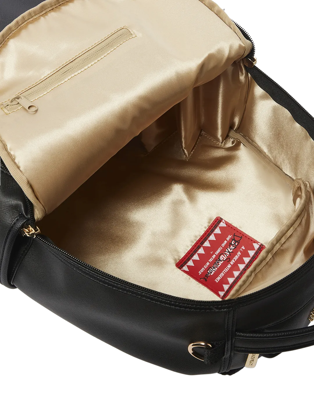 Dimensions: 18″ x 6″ x 11.5″ ? Front zipper pocket ? Side pockets ? Zippered Stash pocket ? Separate velour sunglass compartment ? Ergonomic mesh back padding ? Adjustable Straps for custom sizing ? Gold zippers with metal hardware ? Metal “Sprayground Authentic” badge ? Slide through back sleeve connects to carry-on luggage to free your hands