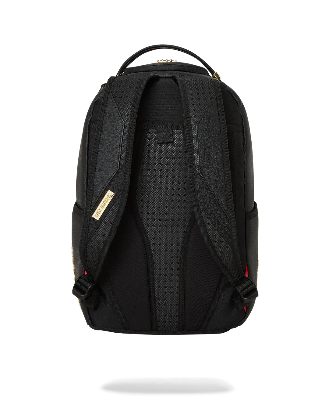Dimensions: 18″ x 6″ x 11.5″ ? Front zipper pocket ? Side pockets ? Zippered Stash pocket ? Separate velour sunglass compartment ? Ergonomic mesh back padding ? Adjustable Straps for custom sizing ? Gold zippers with metal hardware ? Metal “Sprayground Authentic” badge ? Slide through back sleeve connects to carry-on luggage to free your hands