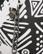 Whimsical sphere-shaped shoulder bag features map printed in saffiano fabric with contrast cognac pebble fabric