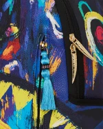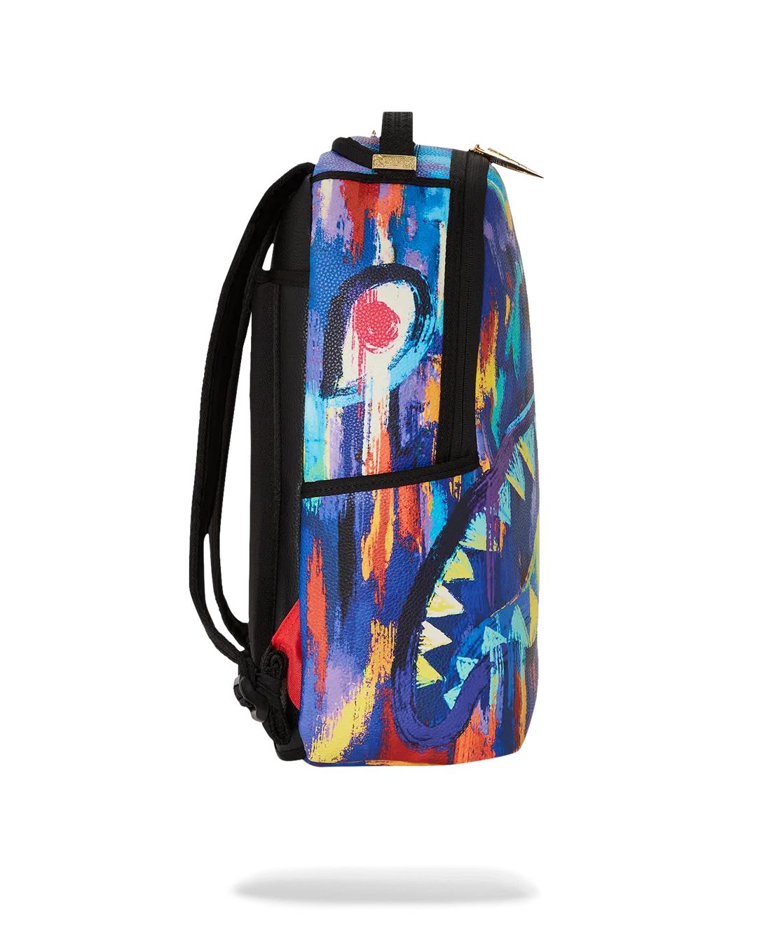 Dimensions: 18″ x 6″ x 11.5″ ? Front zipper pocket ? Side pockets ? Zippered Stash pocket ? Separate velour sunglass compartment ? Ergonomic mesh back padding ? Adjustable Straps for custom sizing ? Gold zippers with metal hardware ? Metal “Sprayground Authentic” badge ? Slide through back sleeve connects to carry-on luggage to free your hands