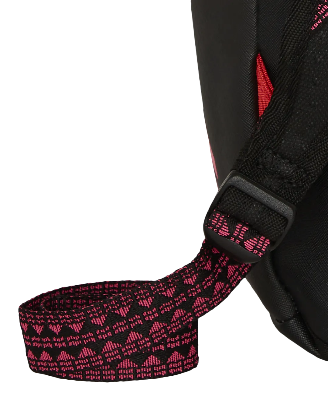 Dimensions: 18″ x 6″ x 11.5″ ? Front zipper pocket ? Side pockets ? Zippered Stash pocket ? Separate velour sunglass compartment ? Ergonomic mesh back padding ? Adjustable Straps for custom sizing ? Gold zippers with metal hardware ? Metal “Sprayground Authentic” badge ? Slide through back sleeve connects to carry-on luggage to free your hands