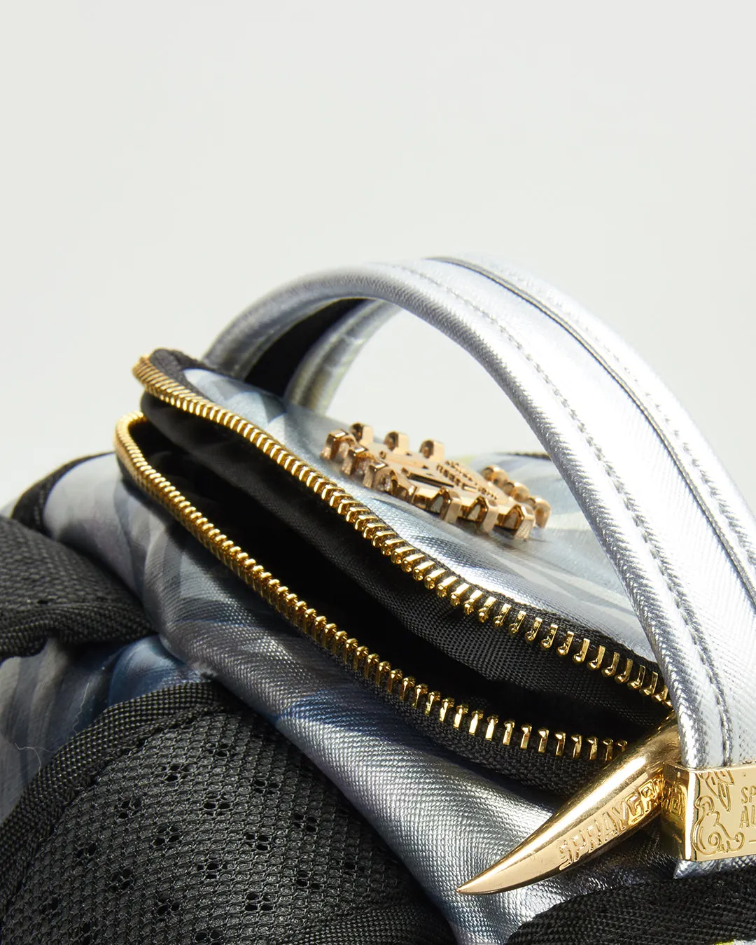 Dimensions: 18″ x 6″ x 11.5″ ? Front zipper pocket ? Side pockets ? Zippered Stash pocket ? Separate velour sunglass compartment ? Ergonomic mesh back padding ? Adjustable Straps for custom sizing ? Gold claw and red fringe zippers with metal hardware ? Metal “Sprayground Authentic” badge ? Slide through back sleeve connects to carry-on luggage to free your hands