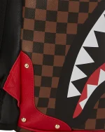 Dimensions: 18″ x 6″ x 11.5″ ? Front zipper pocket ? Side pockets ? Zippered Stash pocket ? Separate velour sunglass compartment ? Ergonomic mesh back padding ? Adjustable Straps for custom sizing ? Gold zippers with metal hardware ? Metal “Sprayground Authentic” badge ? Slide through back sleeve connects to carry-on luggage to free your hands