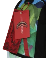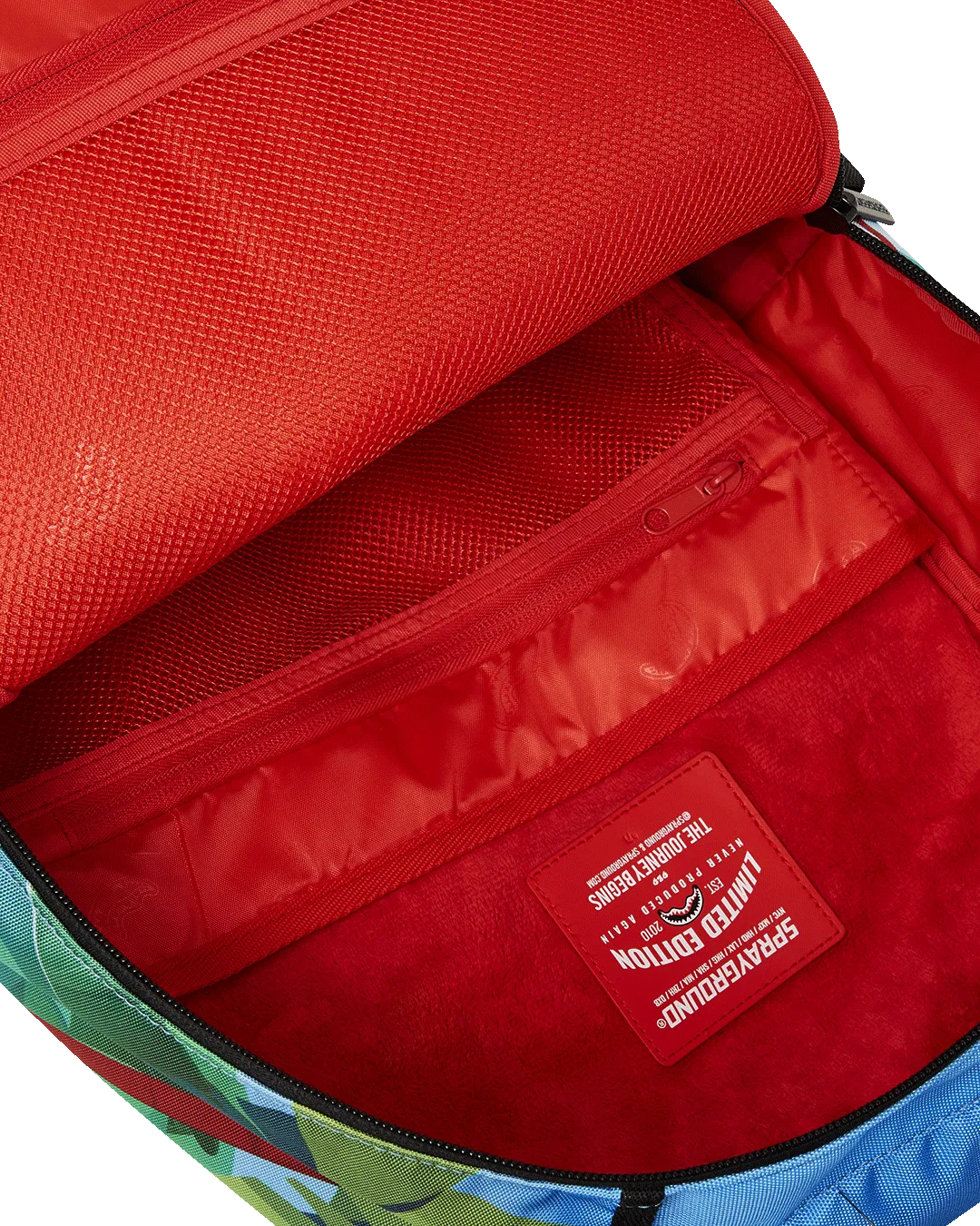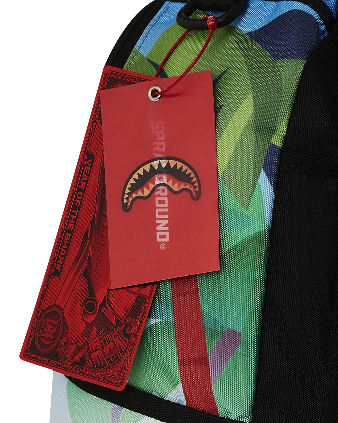 Dimensions: 18″ x 6″ x 11.5″ ? Front zipper pocket ? Side pockets ? Zippered Stash pocket ? Separate velour sunglass compartment ? Ergonomic mesh back padding ? Adjustable Straps for custom sizing ? Gold zippers with metal hardware ? Metal “Sprayground Authentic” badge ? Slide through back sleeve connects to carry-on luggage to free your hands