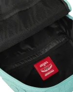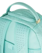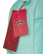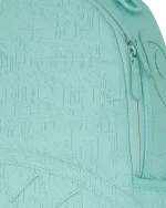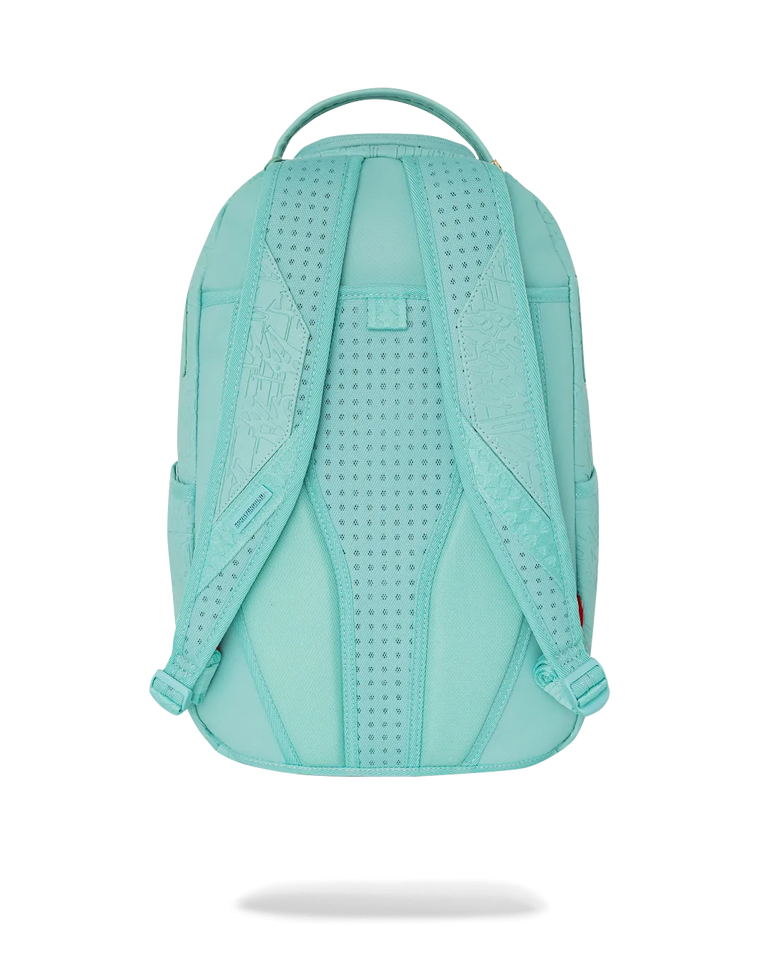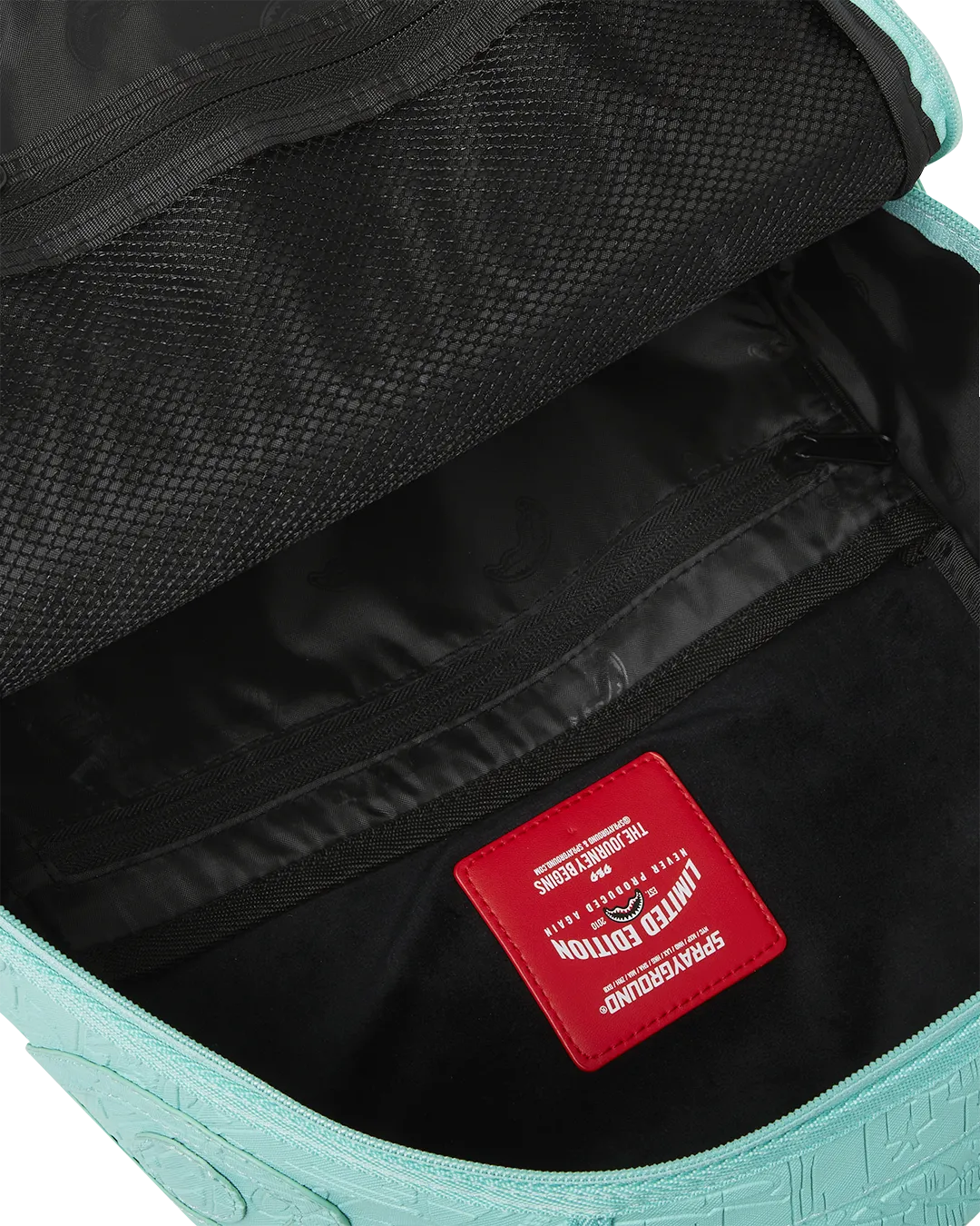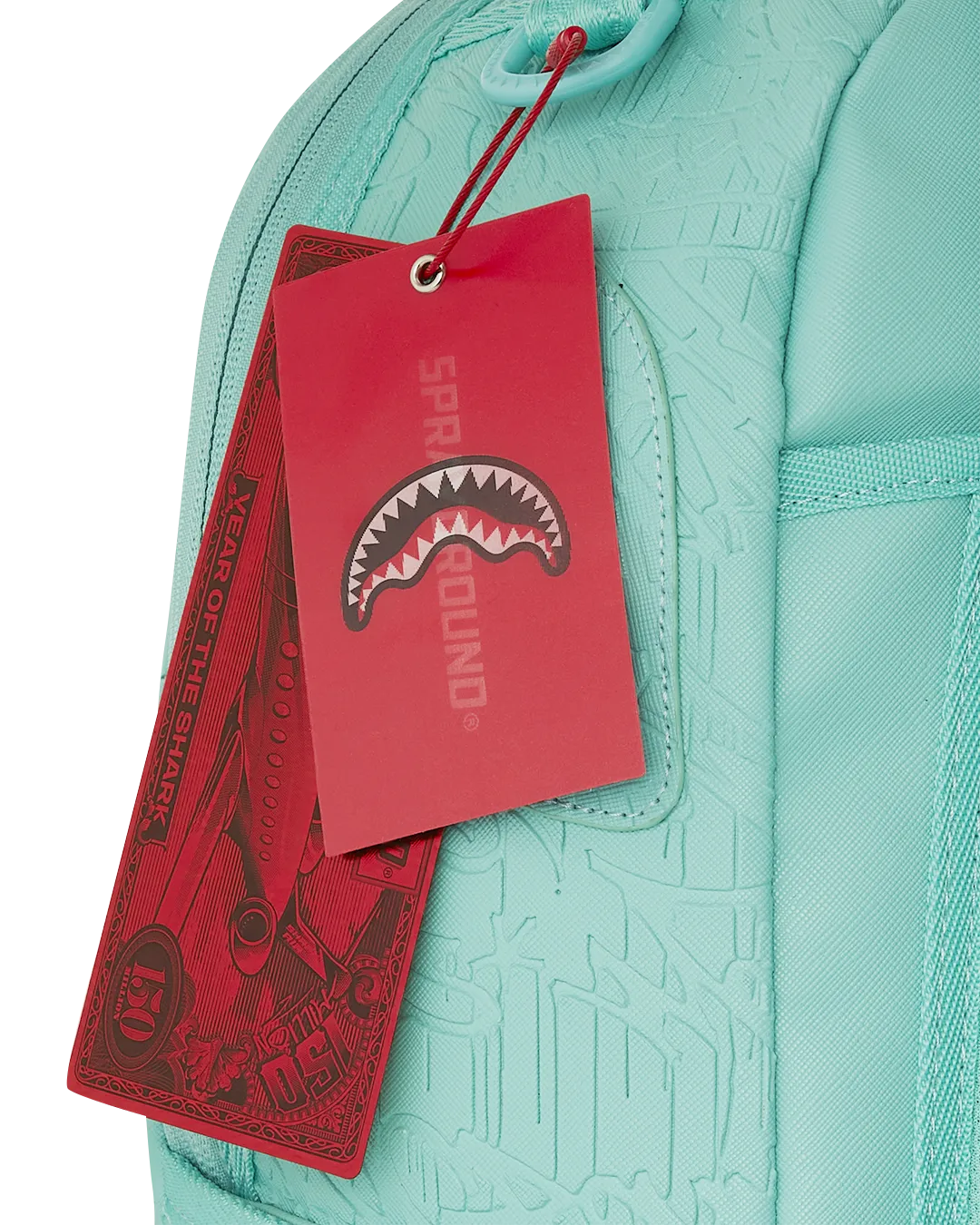 Aqua backpack with graffiti embossing and cut and sew sharkmouth.