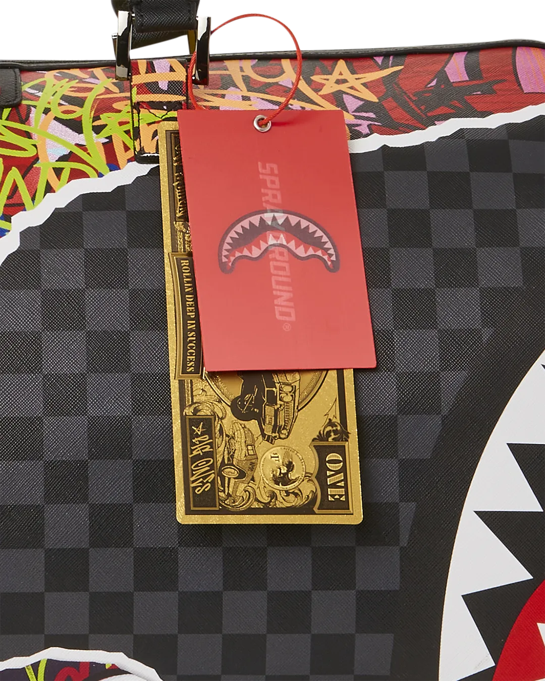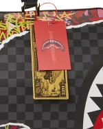 Dimensions: 20″ x 10″ x 10.75″ ? Metal zipper pocket??Back Zippers ?Zippered sneaker pocket ? gold zippers ? Adjustable Straps for custom sizing ?Metal Zippers with Metal Hardware ? bag of Sprayground money