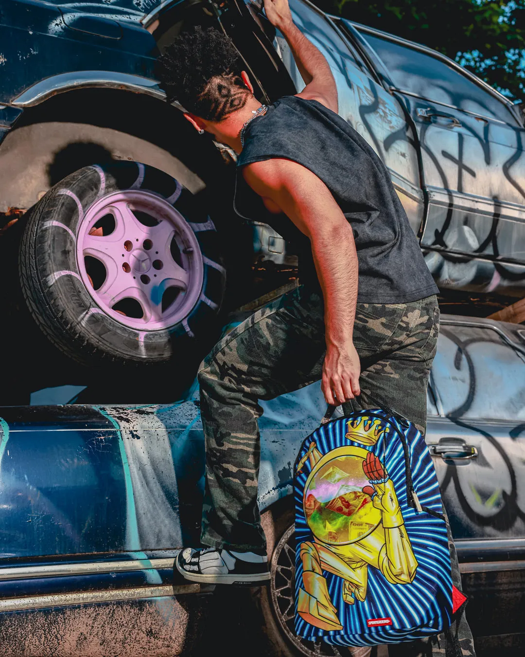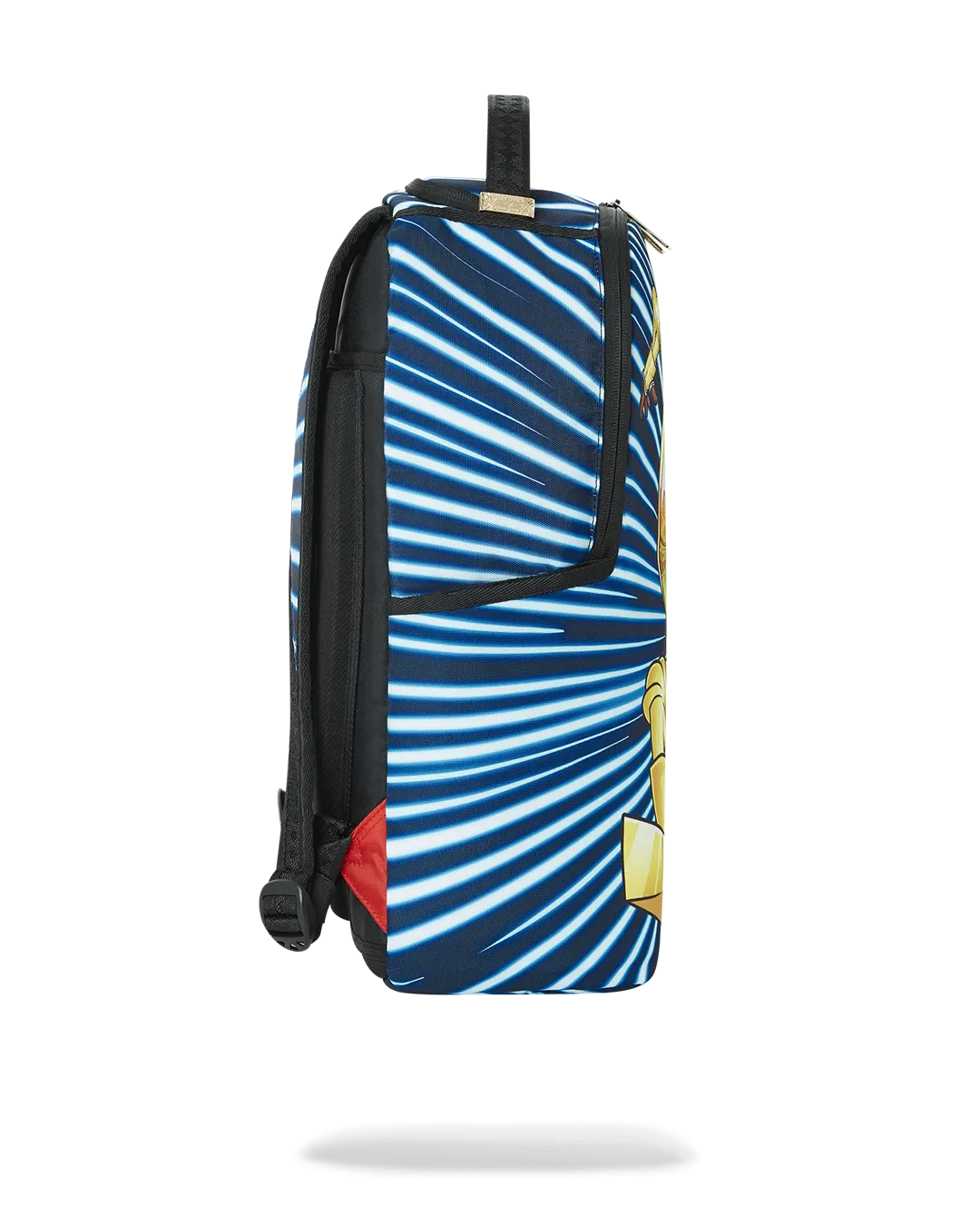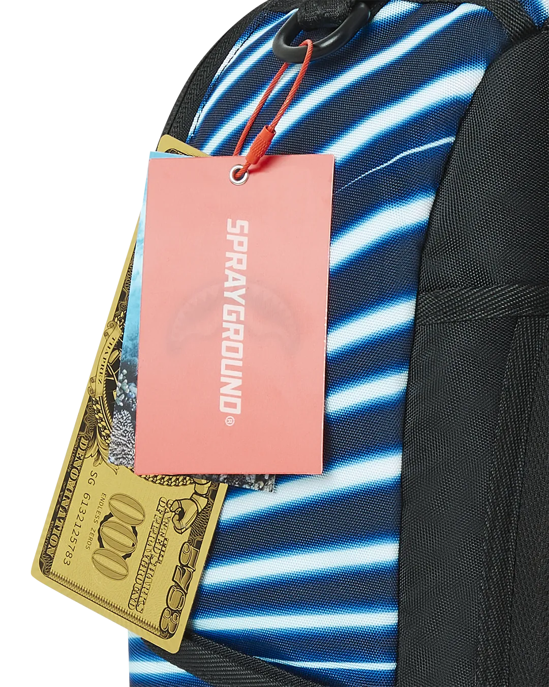 Dimensions: 18″ x 6″ x 11.5″ ? Front zipper pocket ? Side pockets ? Zippered Stash pocket ? Separate velour sunglass compartment ? Ergonomic mesh back padding ? Adjustable Straps for custom sizing ? Gold zippers with metal hardware ? Metal “Sprayground Authentic” badge ? Slide through back sleeve connects to carry-on luggage to free your hands
