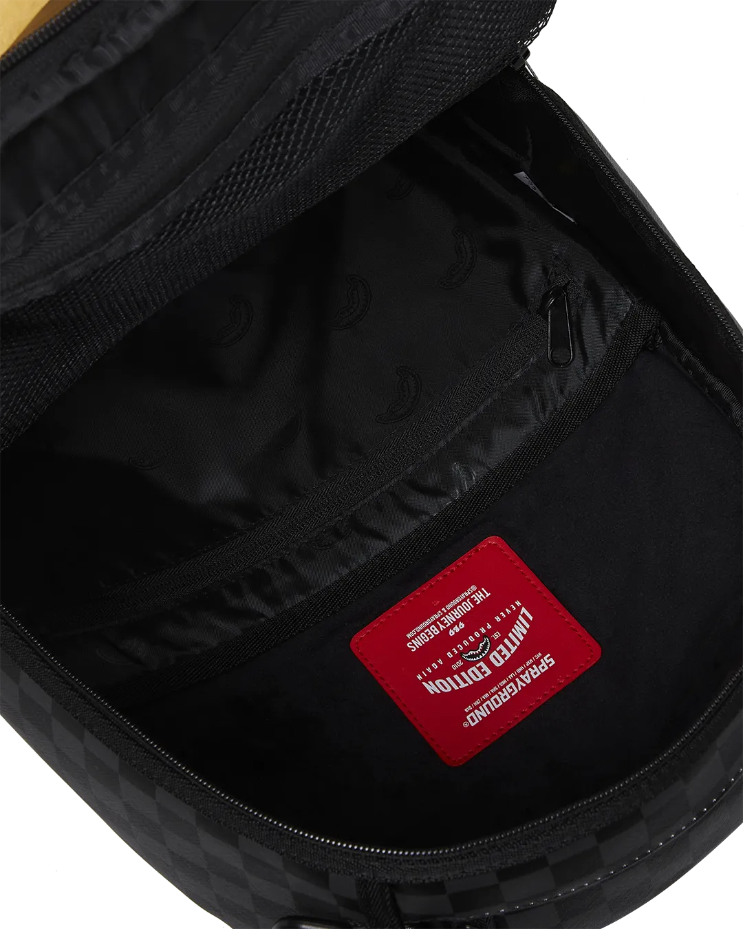 Dimensions: 18″ x 6″ x 11.5″ ? Front zipper pocket ? Side pockets ? Zippered Stash pocket ? Separate velour sunglass compartment ? Ergonomic mesh back padding ? Adjustable Straps for custom sizing ? Gold zippers with metal hardware ? Metal “Sprayground Authentic” badge ? Slide through back sleeve connects to carry-on luggage to free your hands