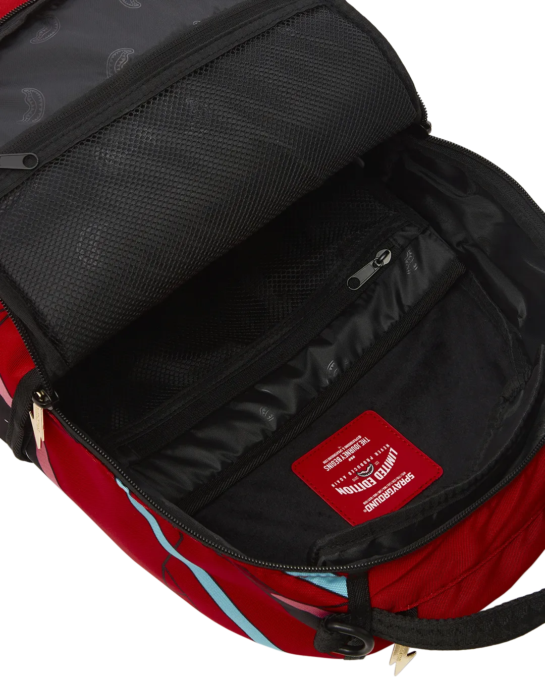 Dimensions: 18″ x 6″ x 11.5″ ? Front zipper pocket ? Side pockets ? Zippered Stash pocket ? Ergonomic mesh back padding ? Adjustable Straps for custom sizing ? Nylon Zippers with Metal Hardware ? Metal “Sprayground Authentic” badge ? Slide through back sleeve connects to Carry on luggage to free your hands