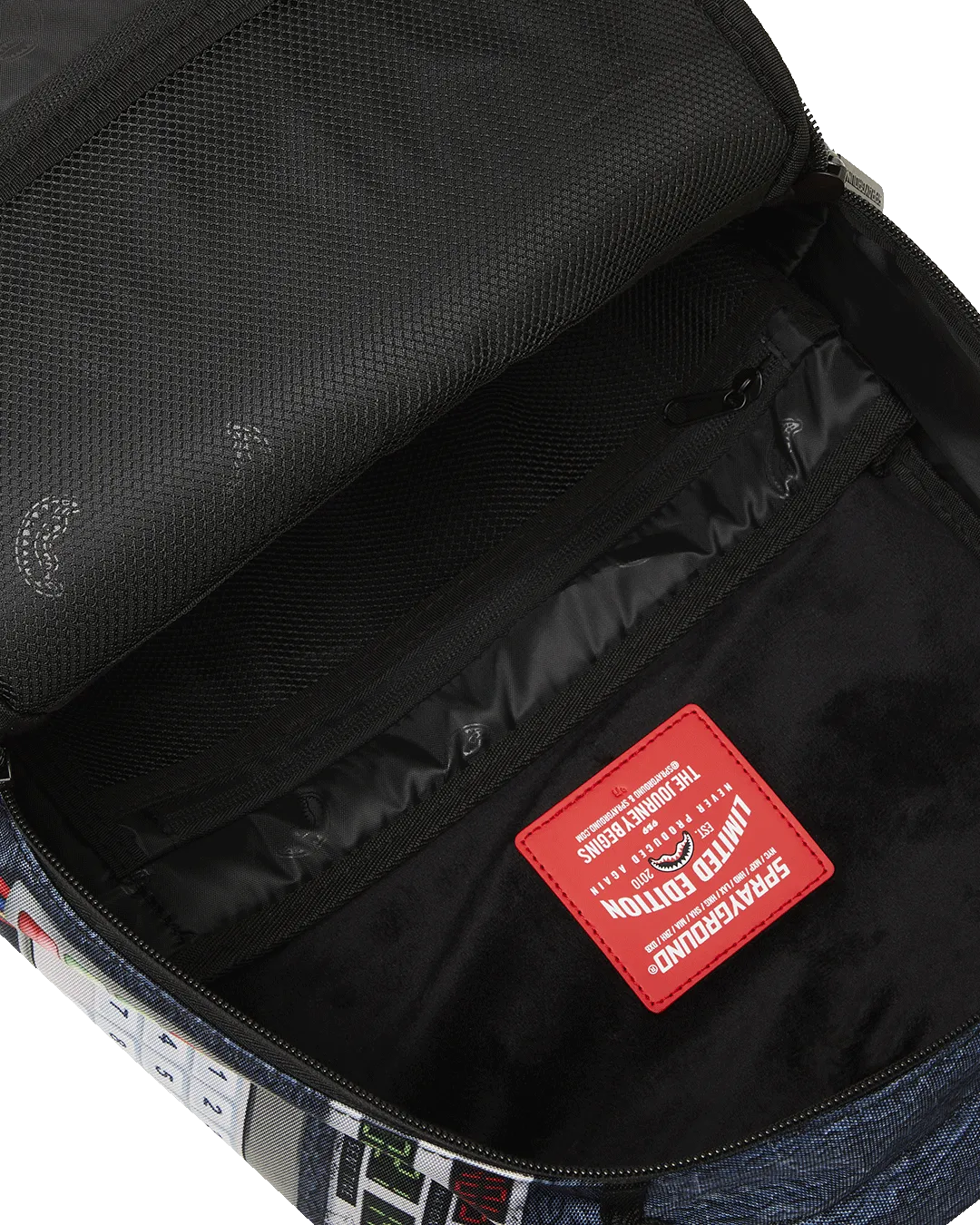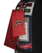 Dimensions: 18″ x 6″ x 11.5″ ? Front zipper pocket ? Side pockets ? Zippered Stash pocket ? Separate velour sunglass compartment ? Ergonomic mesh back padding ? Adjustable Straps for custom sizing ? Gold zippers with metal hardware ? Metal “Sprayground Authentic” badge ? Slide through back sleeve connects to carry-on luggage to free your hands