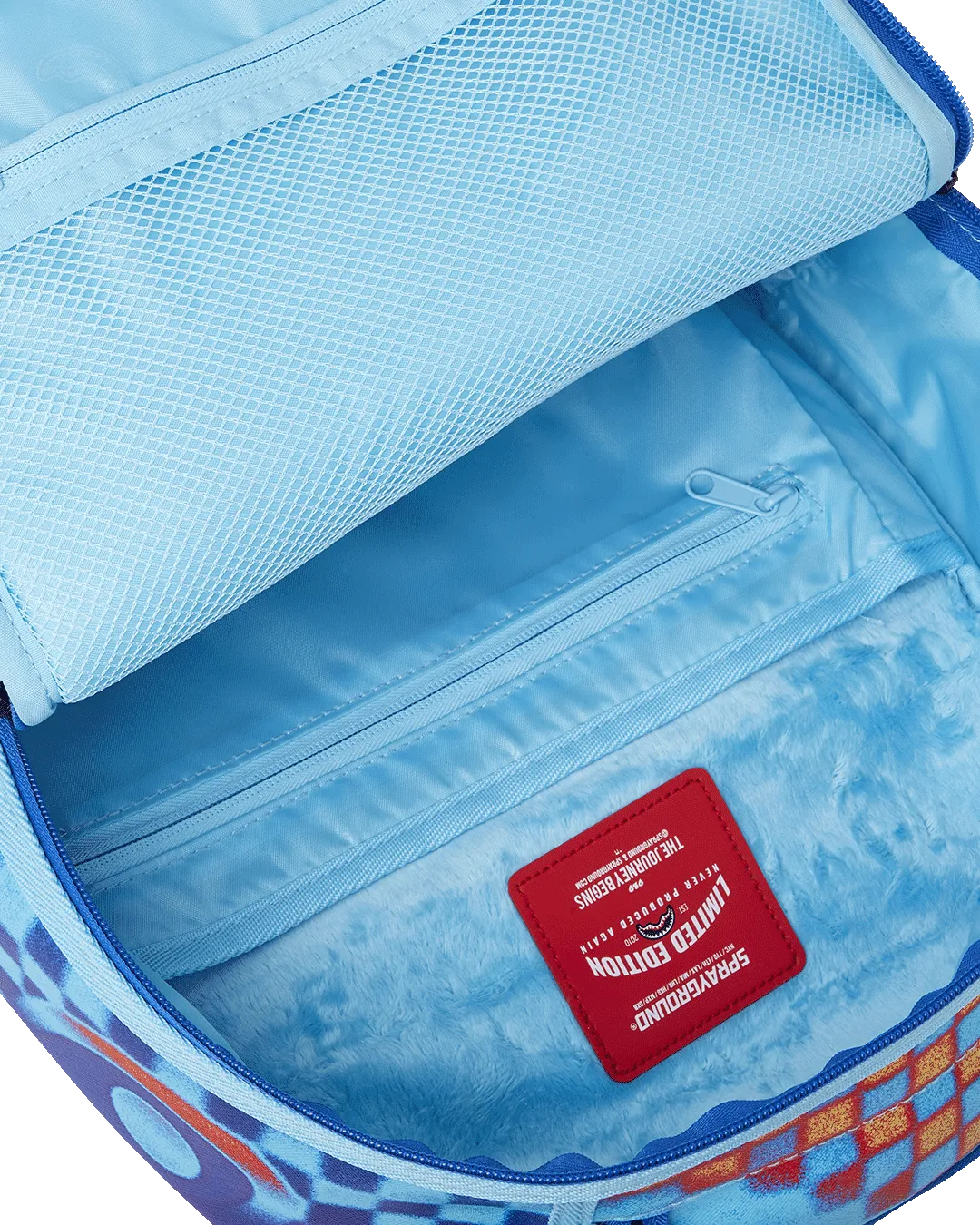 Dimensions: 18″ x 6″ x 11.5″ ? Front zipper pocket ? Side pockets ? Zippered Stash pocket ? Separate velour sunglass compartment ? Ergonomic mesh back padding ? Adjustable Straps for custom sizing ? Gold zippers with metal hardware ? Metal “Sprayground Authentic” badge ? Slide through back sleeve connects to carry-on luggage to free your hands