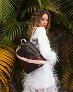 Dimensions: 10″ x 5″ x 11.5″ ? Two large main zippered compartments ? Side pockets ? Zippered Stash pocket ? Adjustable straps for custom sizing ? Gold zippers with metal hardware