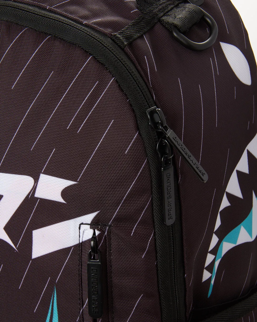Dimensions: 18″ x 6″ x 11.5″ ? Front zipper pocket ? Side pockets ? Zippered Stash pocket ? Separate velour sunglass compartment ? Ergonomic mesh back padding ? Adjustable Straps for custom sizing ? Black zippers with metal hardware ? Metal “Sprayground Authentic” badge ? Slide through back sleeve connects to carry-on luggage to free your hands
