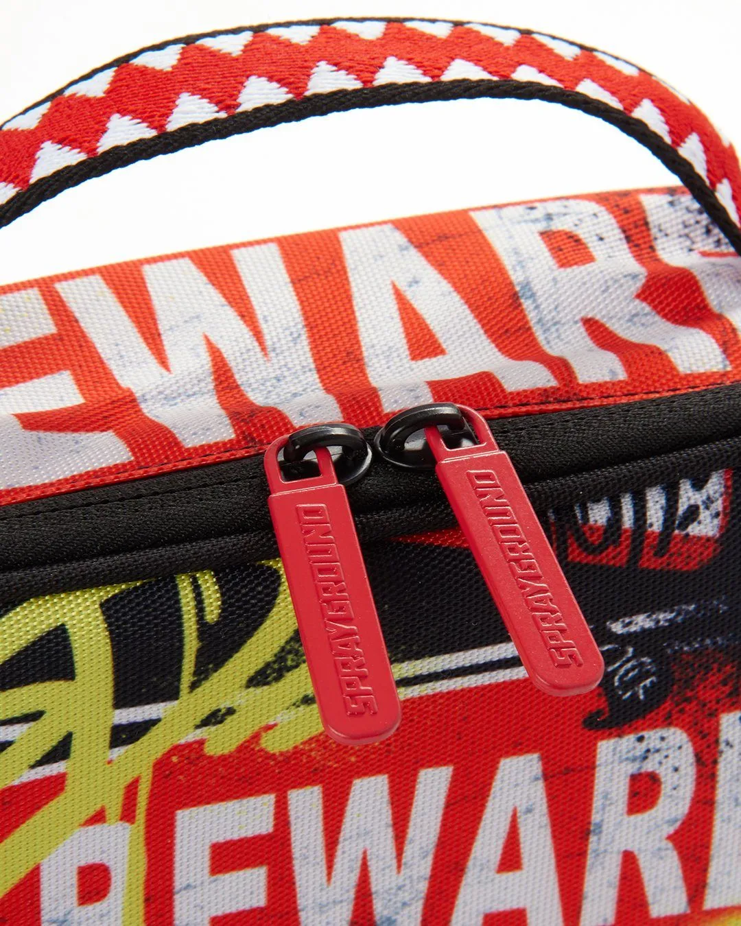 Dimensions: 8.5″ x 3″ x 8.5″ ? Double zipper opening ? Top handle ? Removeable side handle ? Red zippers with metal hardware ? Zippered stash pocket