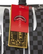 Dimensions: 20″ x 10″ x 10.75″ ? Metal zipper pocket??Back Zippers ?Zippered sneaker pocket ? gold zippers ? Adjustable Straps for custom sizing ?Metal Zippers with Metal Hardware ? bag of Sprayground money