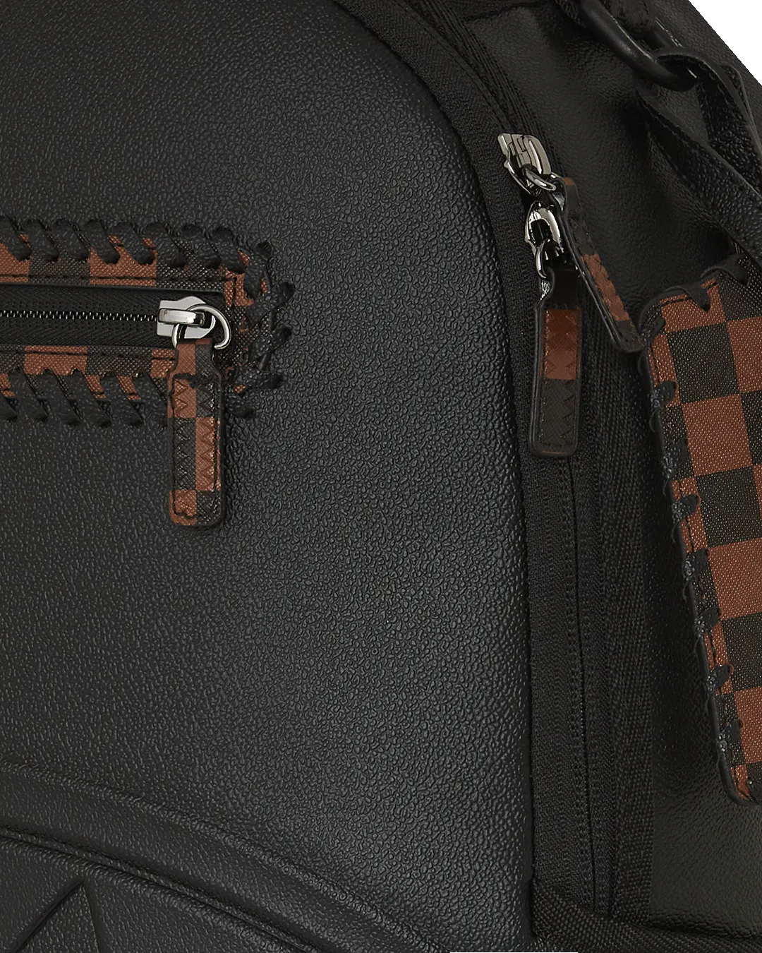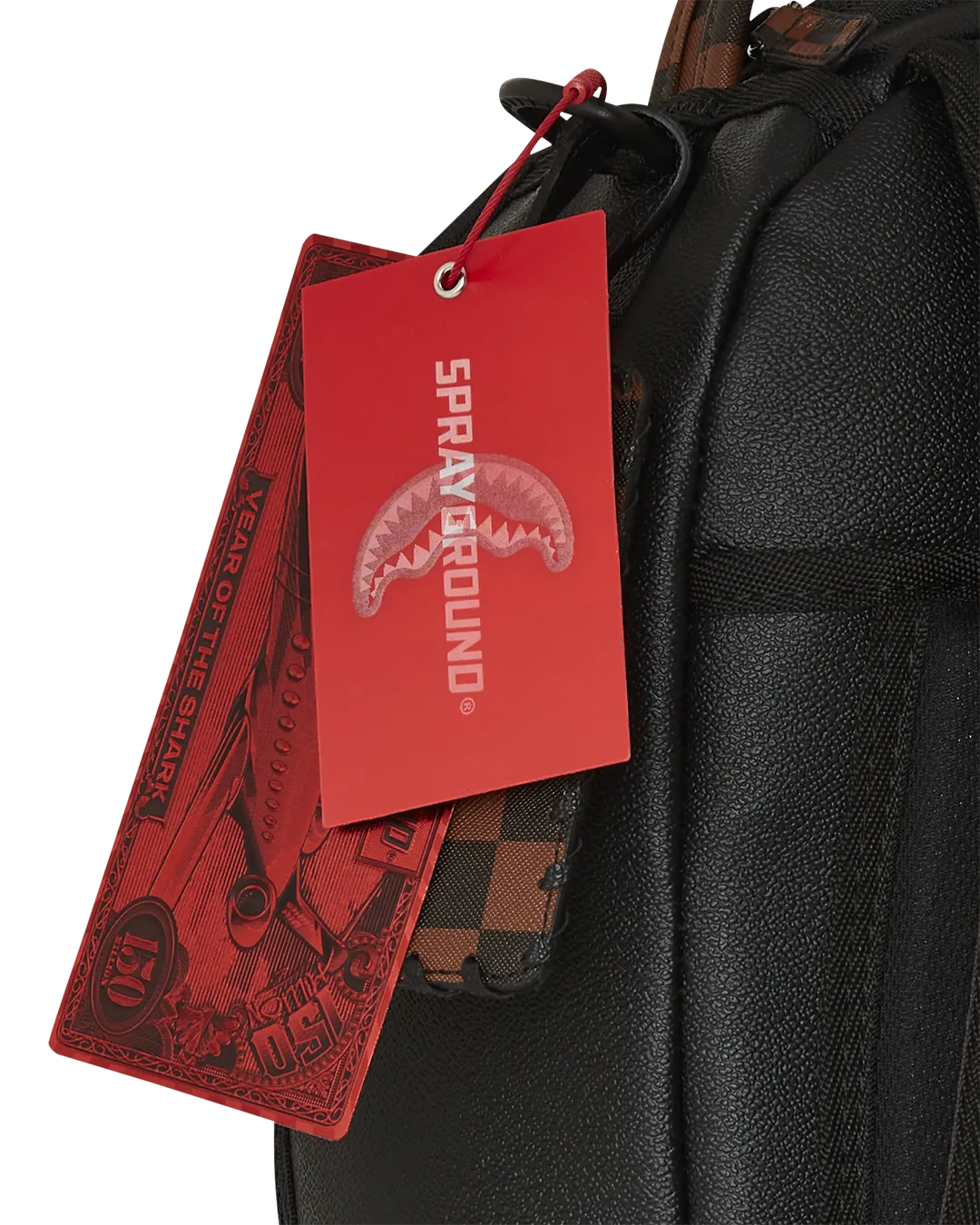 Dimensions: 18″ x 6″ x 11.5″ ? Front zipper pocket ? Side pockets ? Zippered Stash pocket ? Separate velour sunglass compartment ? Ergonomic mesh back padding ? Adjustable Straps for custom sizing ? Gold zippers with metal hardware ? Metal “Sprayground Authentic” badge ? Slide through back sleeve connects to carry-on luggage to free your hands