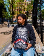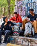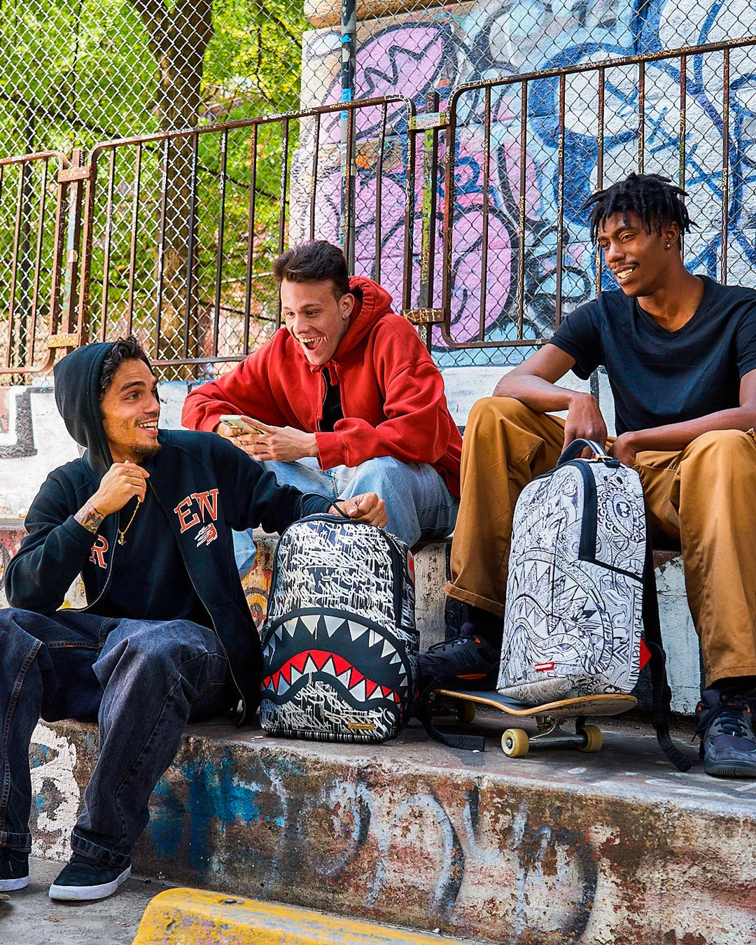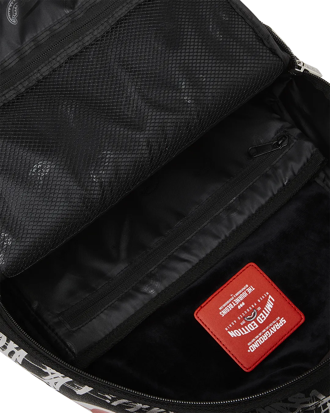 Dimensions: 18″ x 6″ x 11.5″ ? Front zipper pocket ? Side pockets ? Zippered Stash pocket ? Separate velour sunglass compartment ? Ergonomic mesh back padding ? Adjustable Straps for custom sizing ? Gold zippers with metal hardware ? Metal “Sprayground Authentic” badge ? Slide through back sleeve connects to carry-on luggage to free your hands