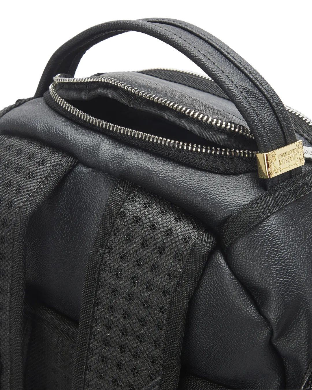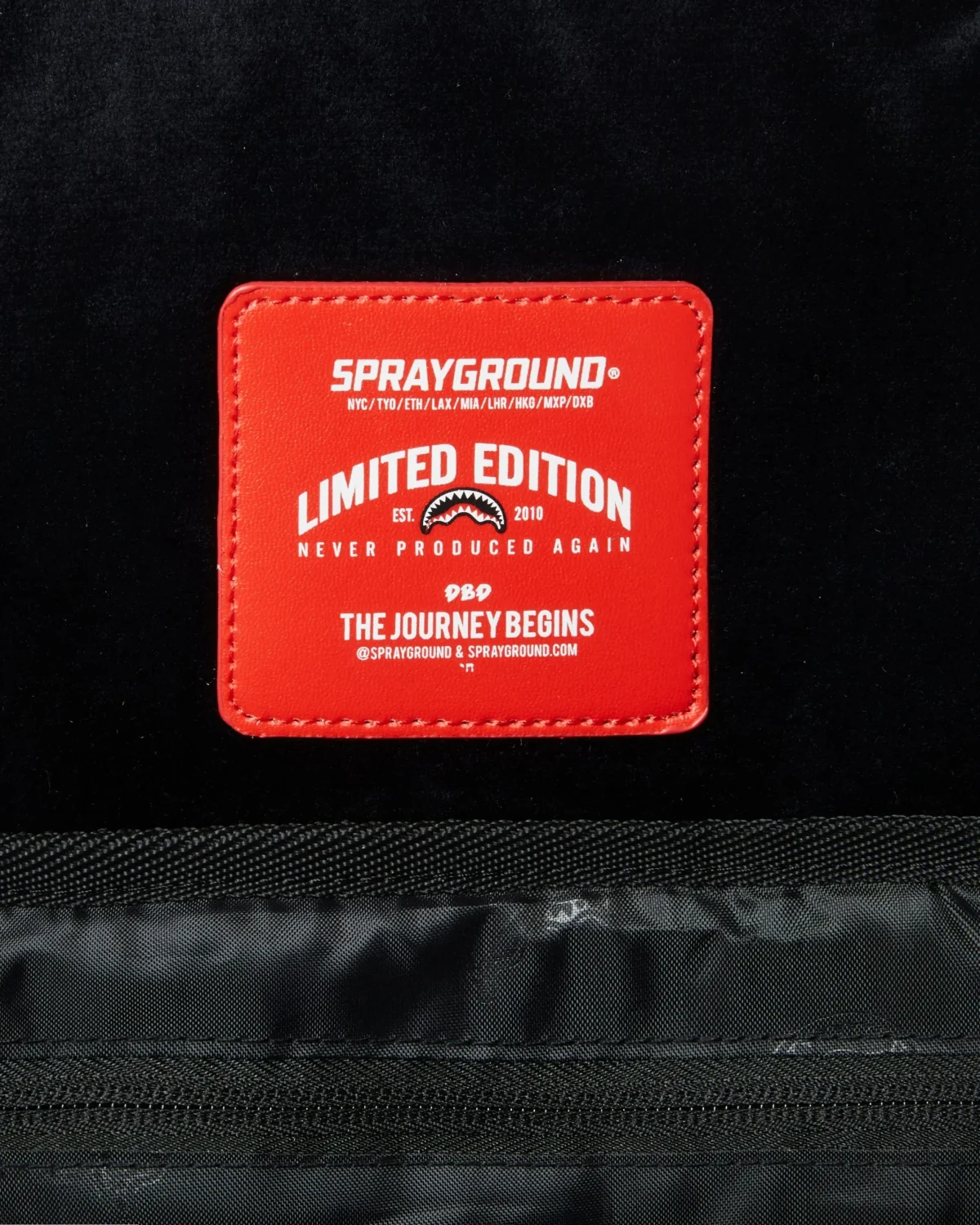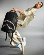Dimensions: 18″ x 6″ x 11.5″ ? Front zipper pocket ? Side pockets ? Zippered Stash pocket ? Separate velour sunglass compartment ? Ergonomic mesh back padding ? Adjustable Straps for custom sizing ? Gold zippers with metal hardware ? Metal “Sprayground Authentic” badge ? Slide through back sleeve connects to carry-on luggage to free your hands