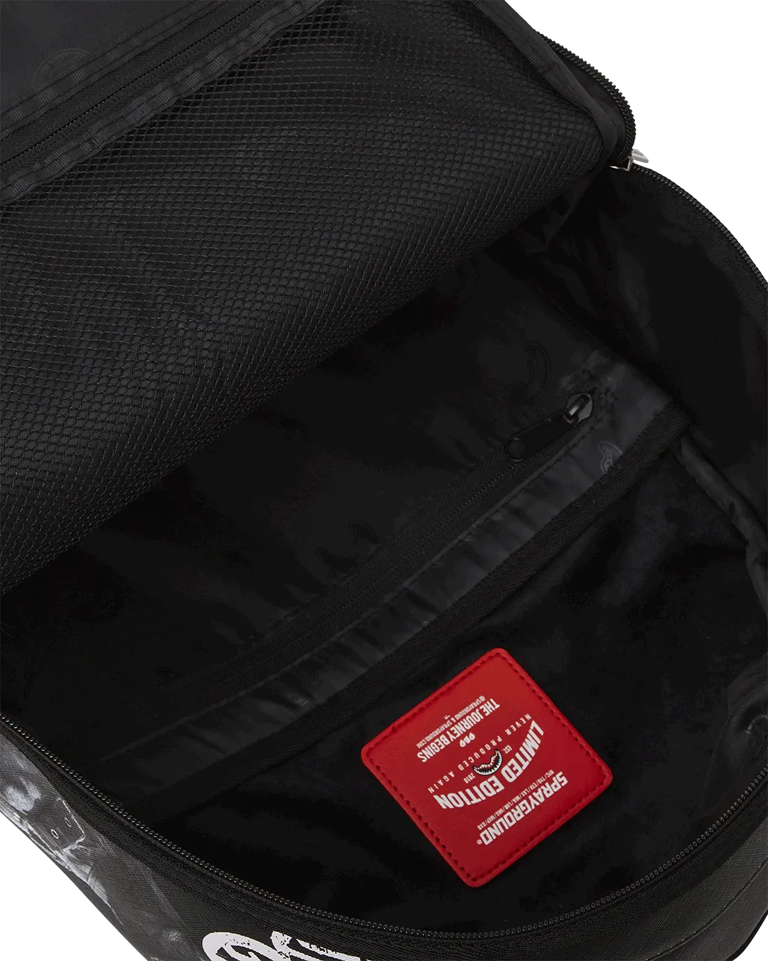 Dimensions: 18″ x 6″ x 11.5″ ? Front zipper pocket ? Side pockets ? Zippered Stash pocket ? Separate velour sunglass compartment ? Ergonomic mesh back padding ? Adjustable Straps for custom sizing ? Gold zippers with metal hardware ? Metal “Sprayground Authentic” badge ? Slide through back sleeve connects to carry-on luggage to free your hands