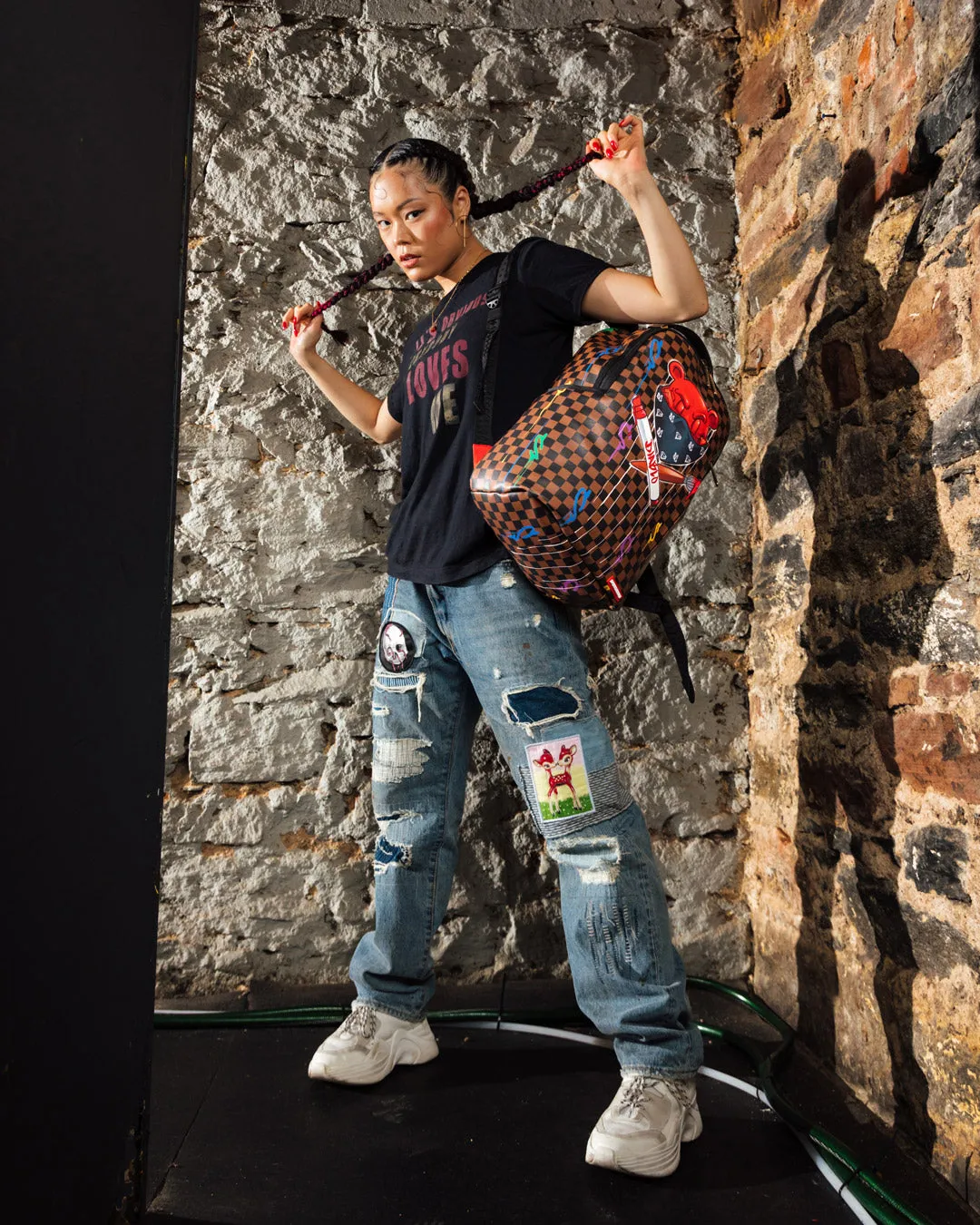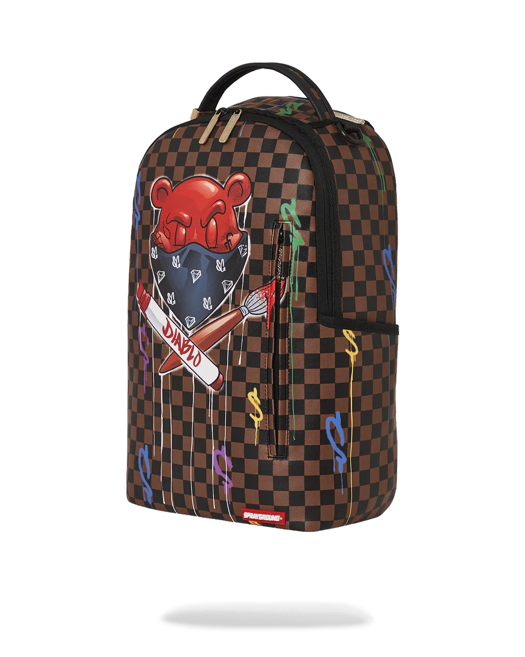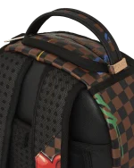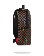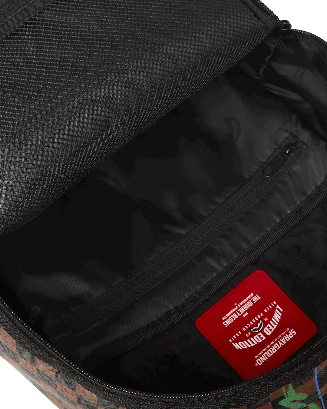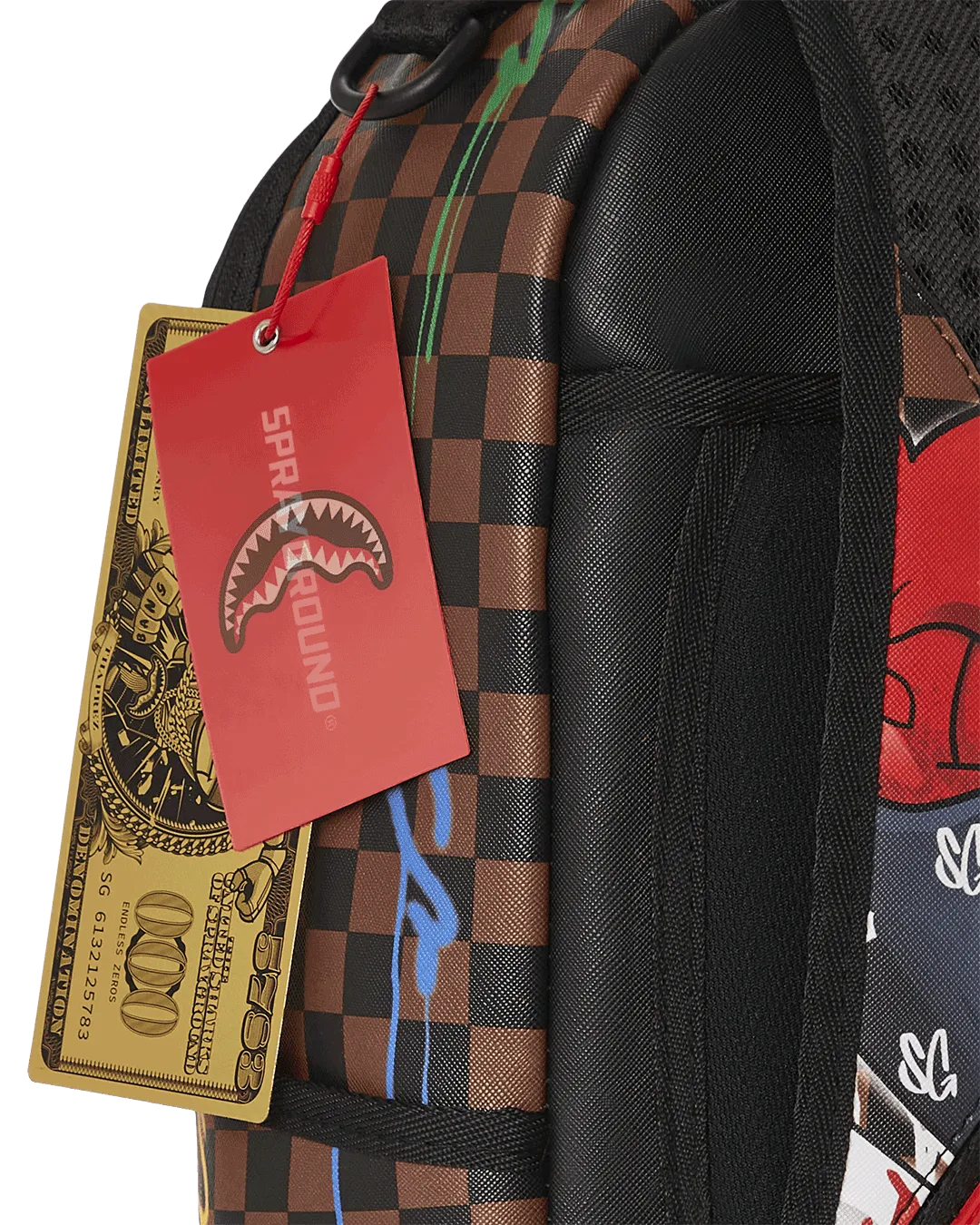 Dimensions: 18″ x 6″ x 11.5″ ? Front zipper pocket ? Side pockets ? Zippered Stash pocket ? Separate velour sunglass compartment ? Ergonomic mesh back padding ? Adjustable Straps for custom sizing ? Gold zippers with metal hardware ? Metal “Sprayground Authentic” badge ? Slide through back sleeve connects to carry-on luggage to free your hands