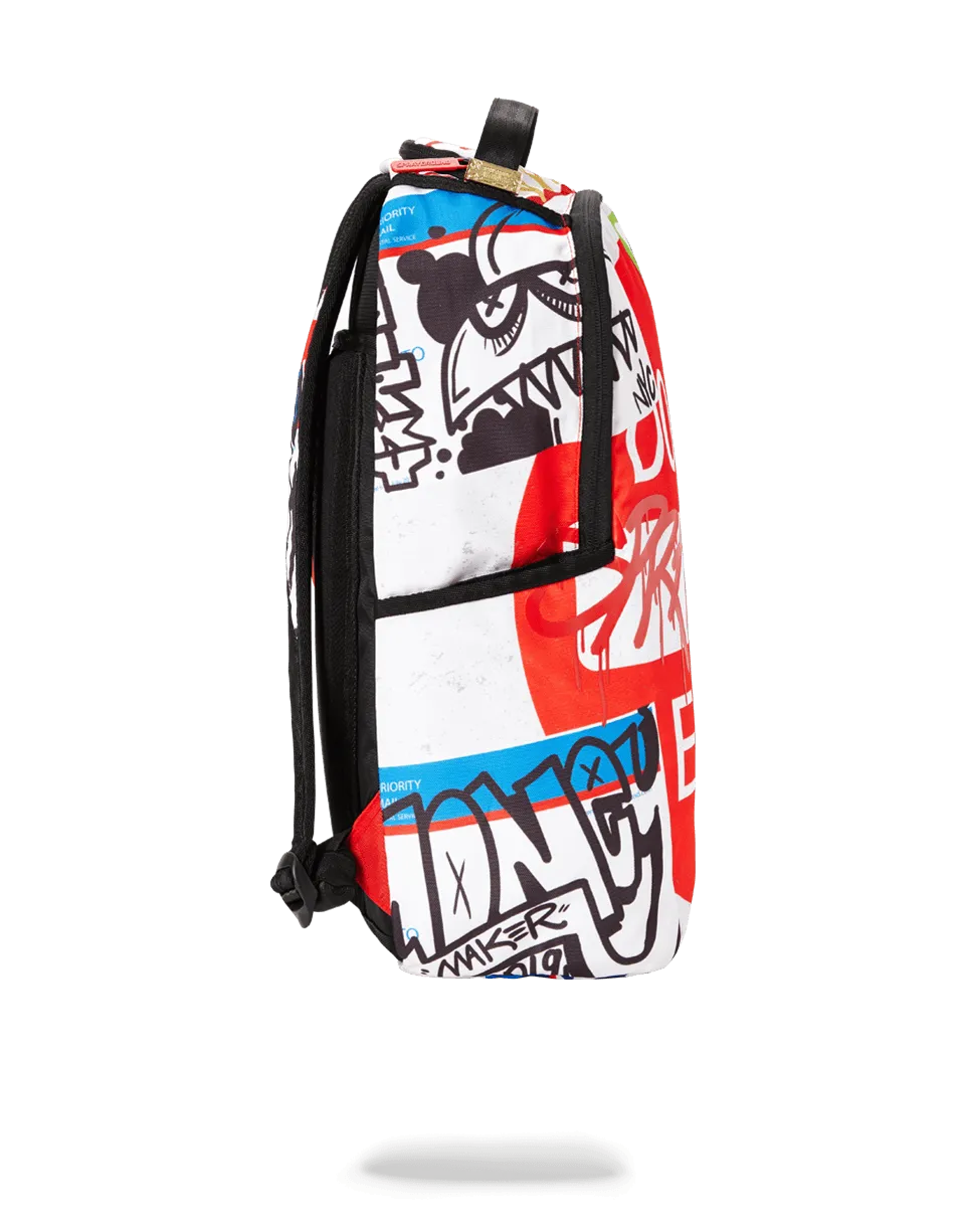Dimensions: 18″ x 6″ x 11.5″ ? Front zipper pocket ? Side pockets ? Zippered Stash pocket ? Ergonomic mesh back padding ? Adjustable Straps for custom sizing ? Nylon Zippers with Metal Hardware ? Metal “Sprayground Authentic” badge ? Slide through back sleeve connects to Carry on luggage to free your hands
