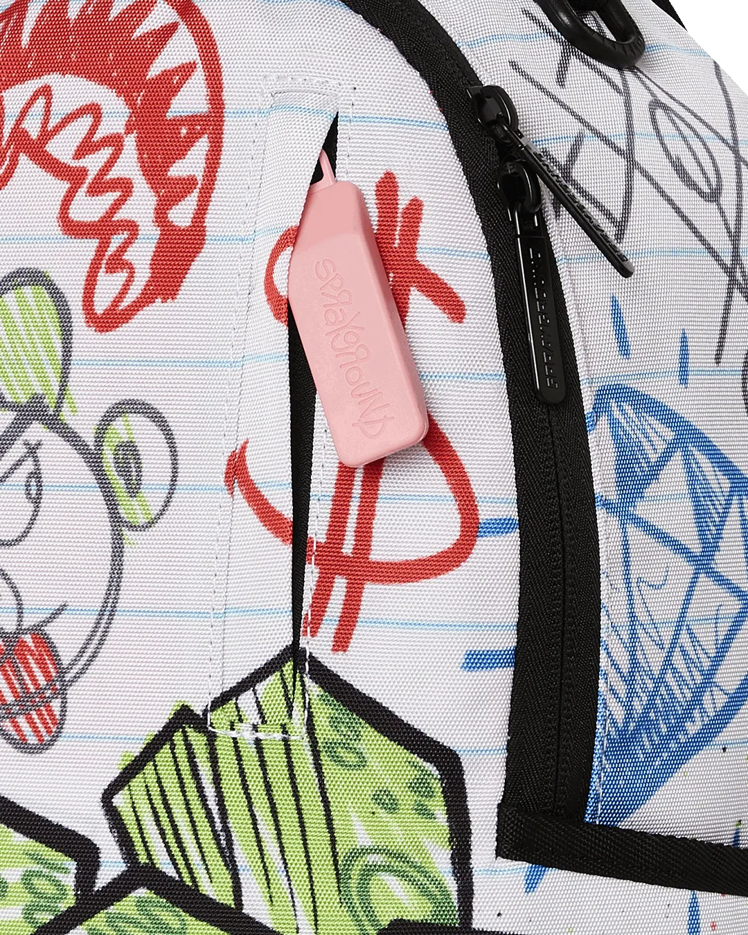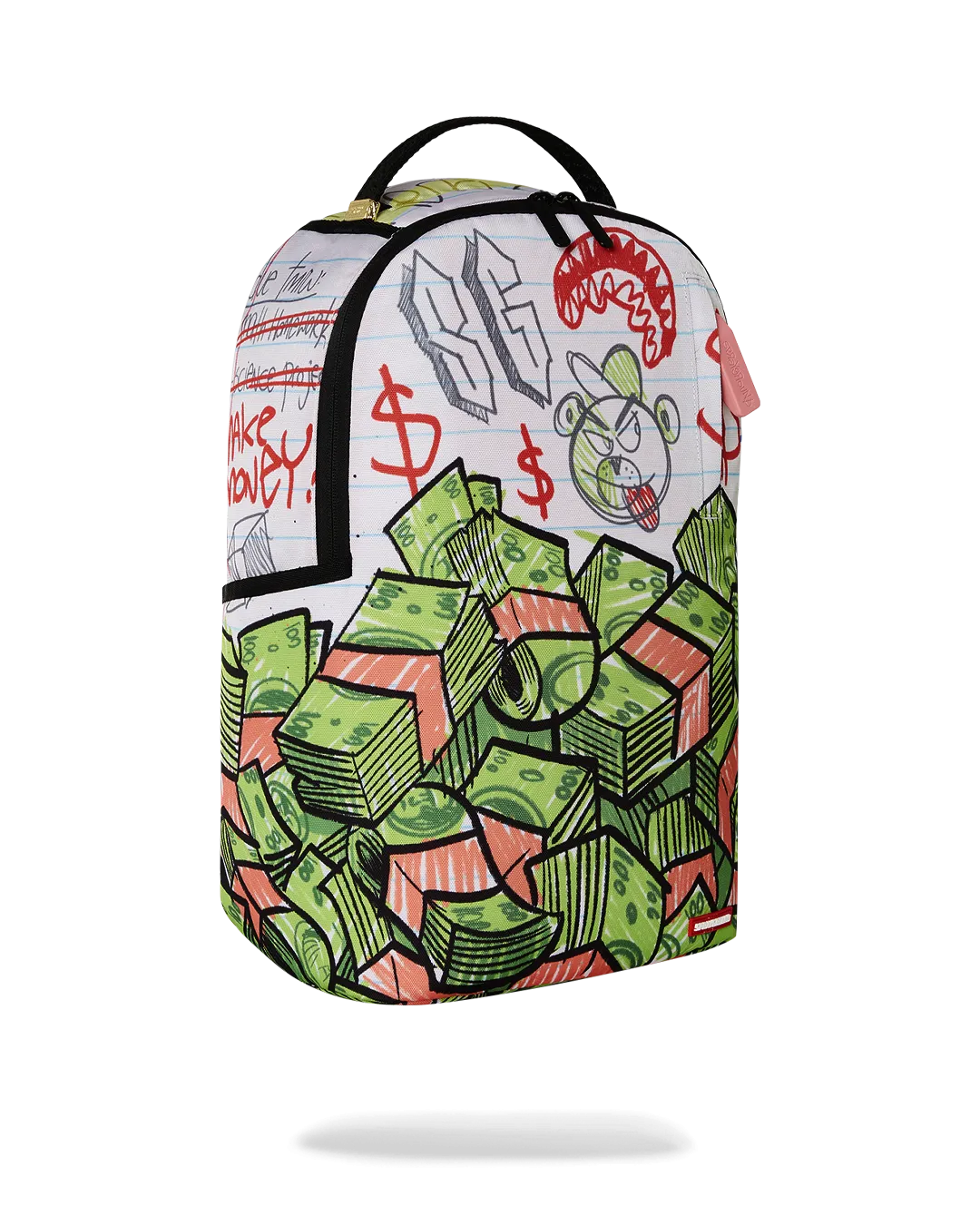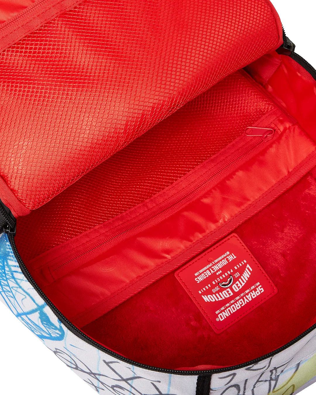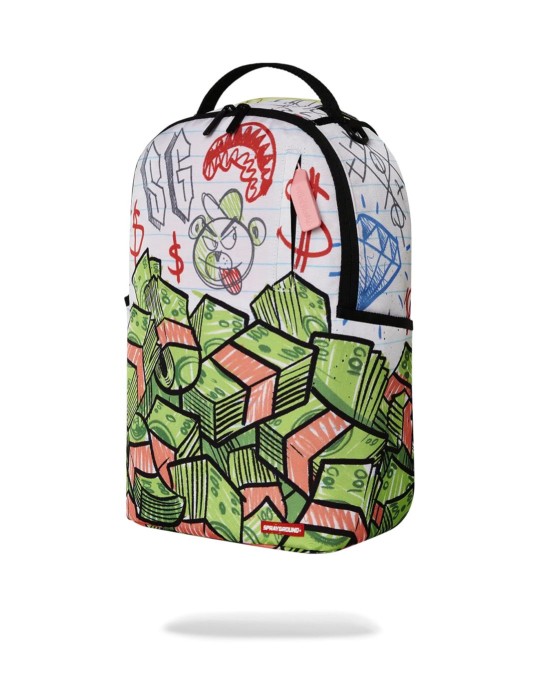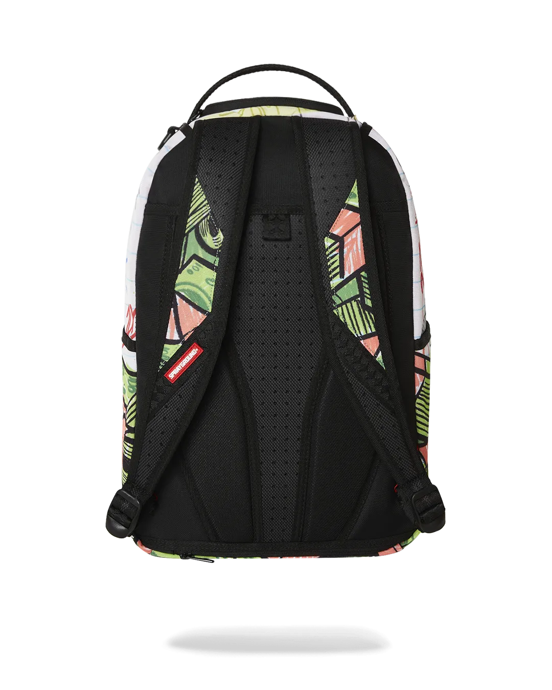 Dimensions: 18″ x 6″ x 11.5″ ? Front zipper pocket ? Side pockets ? Zippered Stash pocket ? Separate velour sunglass compartment ? Ergonomic mesh back padding ? Adjustable Straps for custom sizing ? Gold zippers with metal hardware ? Metal “Sprayground Authentic” badge ? Slide through back sleeve connects to carry-on luggage to free your hands
