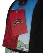 Dimensions: 18″ x 6″ x 11.5″ ? Front zipper pocket ? Side pockets ? Zippered Stash pocket ? Separate velour sunglass compartment ? Ergonomic mesh back padding ? Adjustable Straps for custom sizing ? Gold zippers with metal hardware ? Metal “Sprayground Authentic” badge ? Slide through back sleeve connects to carry-on luggage to free your hands
