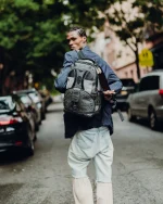 Dimensions: 18″ x 6″ x 11.5″ ? Front zipper pocket ? Side pockets ? Zippered Stash pocket ? Separate velour sunglass compartment ? Ergonomic mesh back padding ? Adjustable Straps for custom sizing ? Gold zippers with metal hardware ? Metal “Sprayground Authentic” badge ? Slide through back sleeve connects to carry-on luggage to free your hands