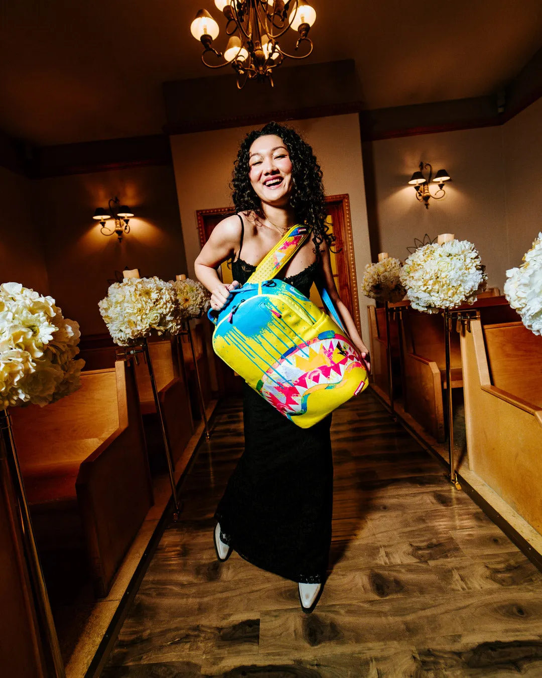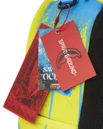 Dimensions: 18″ x 6″ x 11.5″ ? Front zipper pocket ? Side pockets ? Zippered Stash pocket ? Separate velour sunglass compartment ? Ergonomic mesh back padding ? Adjustable Straps for custom sizing ? Gold zippers with metal hardware ? Metal “Sprayground Authentic” badge ? Slide through back sleeve connects to carry-on luggage to free your hands