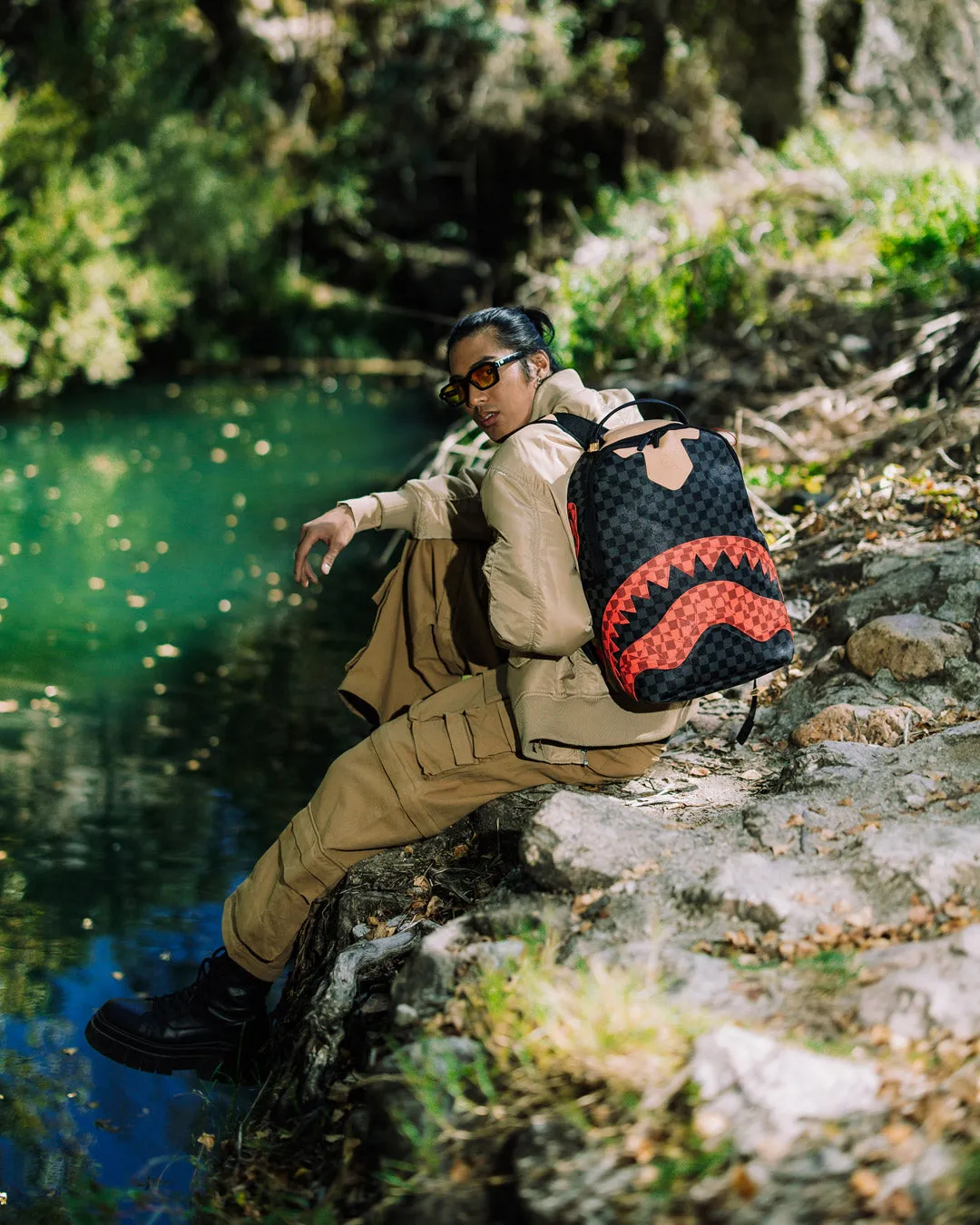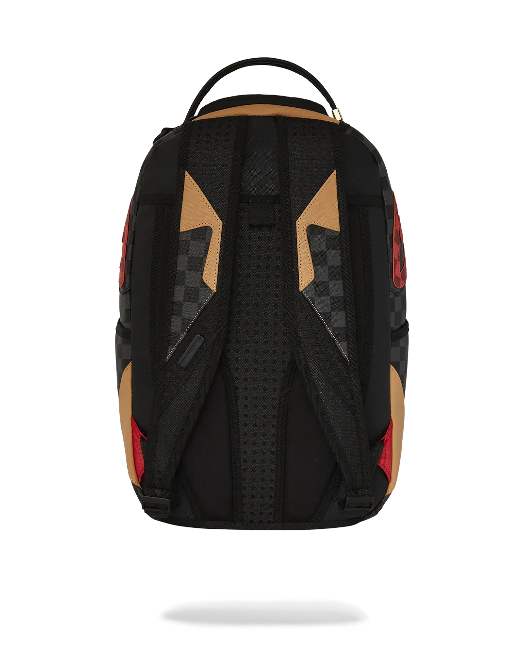 Dimensions: 18″ x 6″ x 11.5″ ? Front zipper pocket ? Side pockets ? Zippered Stash pocket ? Separate velour sunglass compartment ? Ergonomic mesh back padding ? Adjustable Straps for custom sizing ? Gold zippers with metal hardware ? Metal “Sprayground Authentic” badge ? Slide through back sleeve connects to carry-on luggage to free your hands