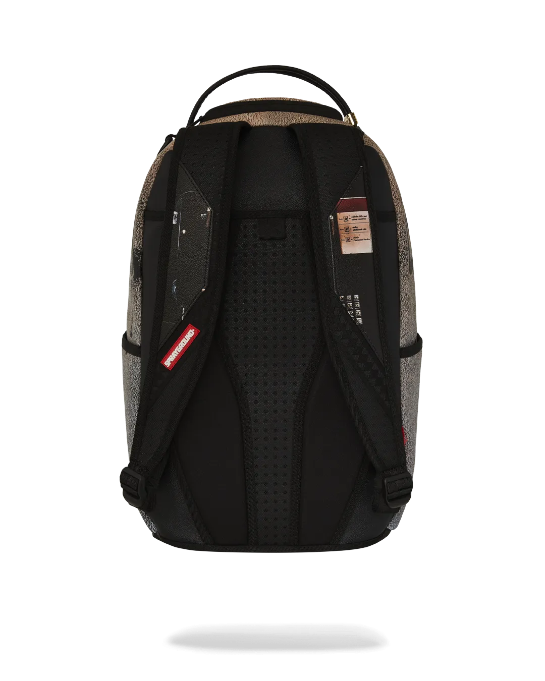 Dimensions: 18″ x 6″ x 11.5″ ? Front zipper pocket ? Side pockets ? Zippered Stash pocket ? Separate velour sunglass compartment ? Ergonomic mesh back padding ? Adjustable Straps for custom sizing ? Gold zippers with metal hardware ? Metal “Sprayground Authentic” badge ? Slide through back sleeve connects to carry-on luggage to free your hands