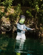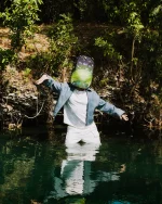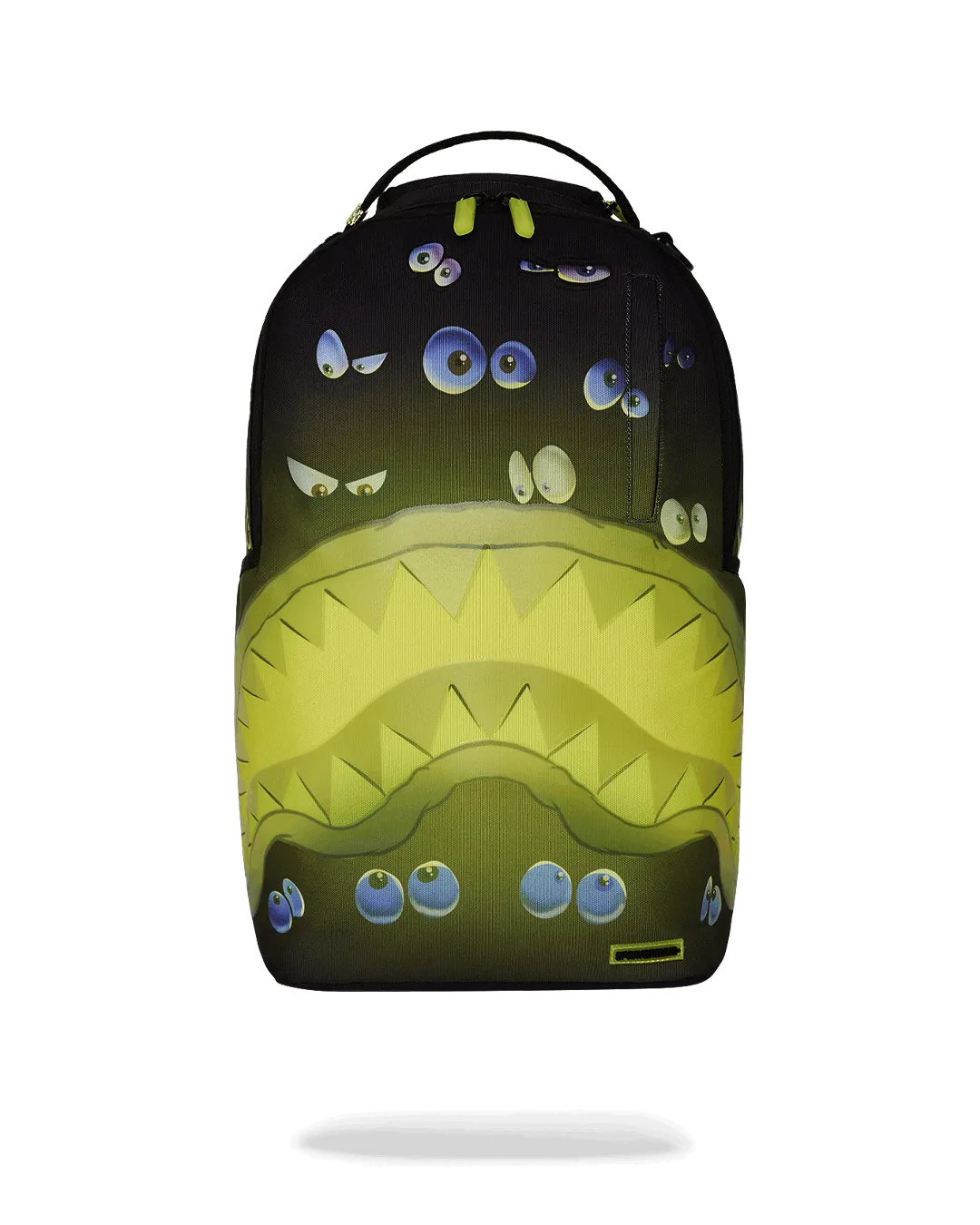 This backpack features a glow in the dark mouth. |