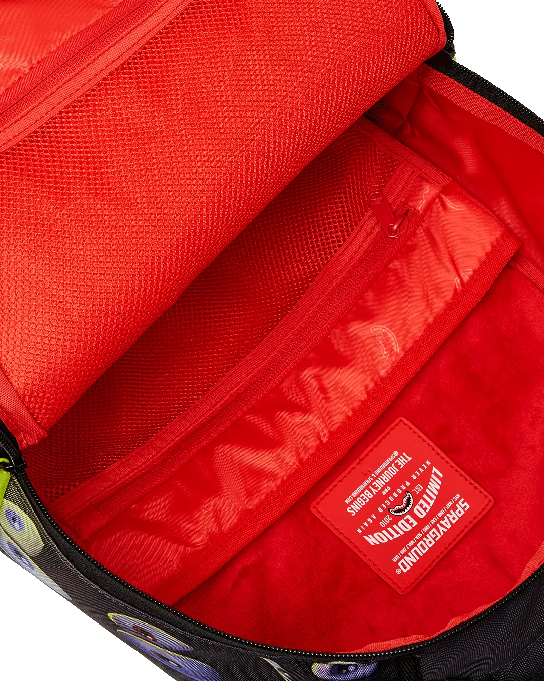 Dimensions: 18″ x 6″ x 11.5″ ? Front zipper pocket ? Side pockets ? Zippered Stash pocket ? Separate velour sunglass compartment ? Ergonomic mesh back padding ? Adjustable Straps for custom sizing ? Gold zippers with metal hardware ? Metal “Sprayground Authentic” badge ? Slide through back sleeve connects to carry-on luggage to free your hands