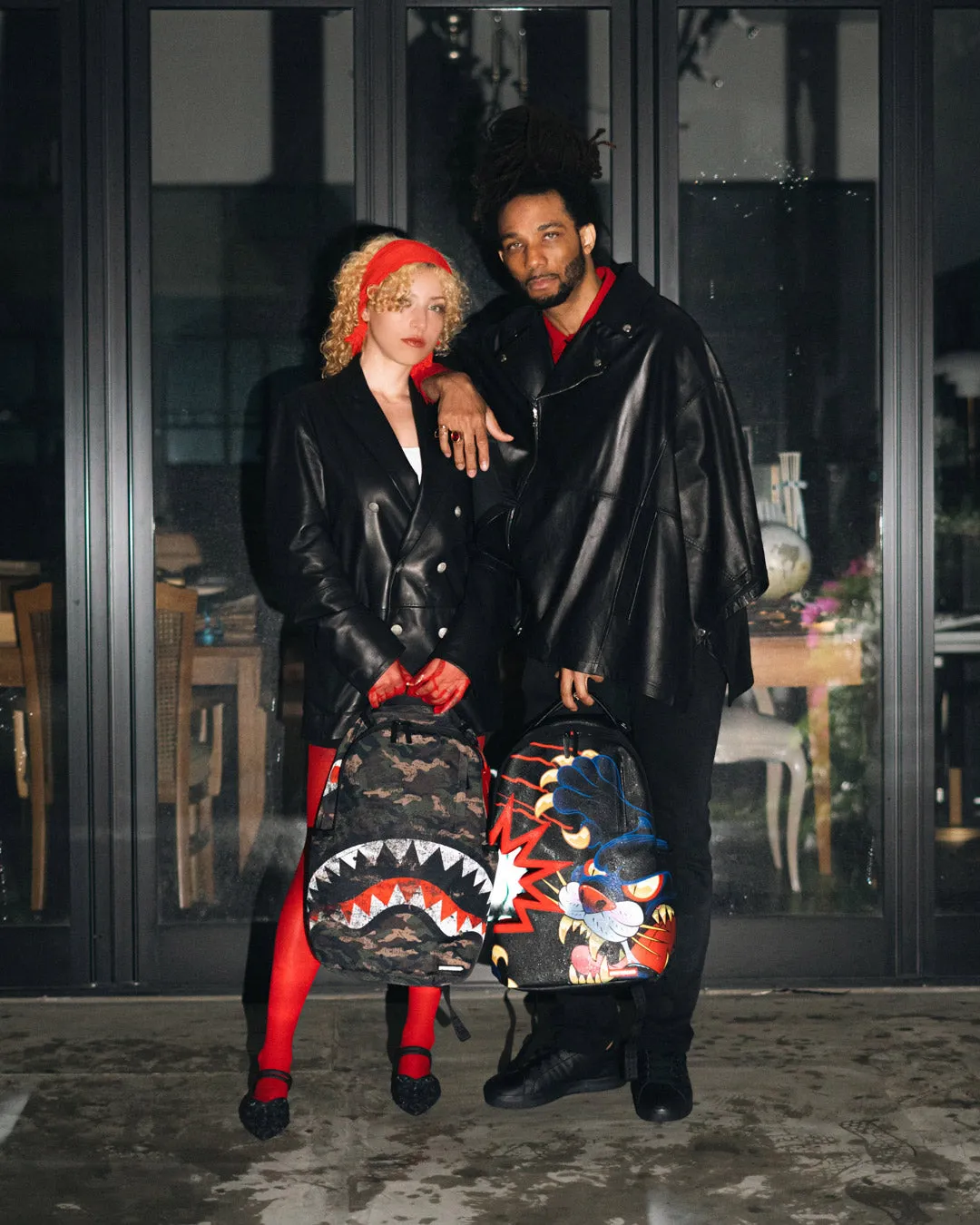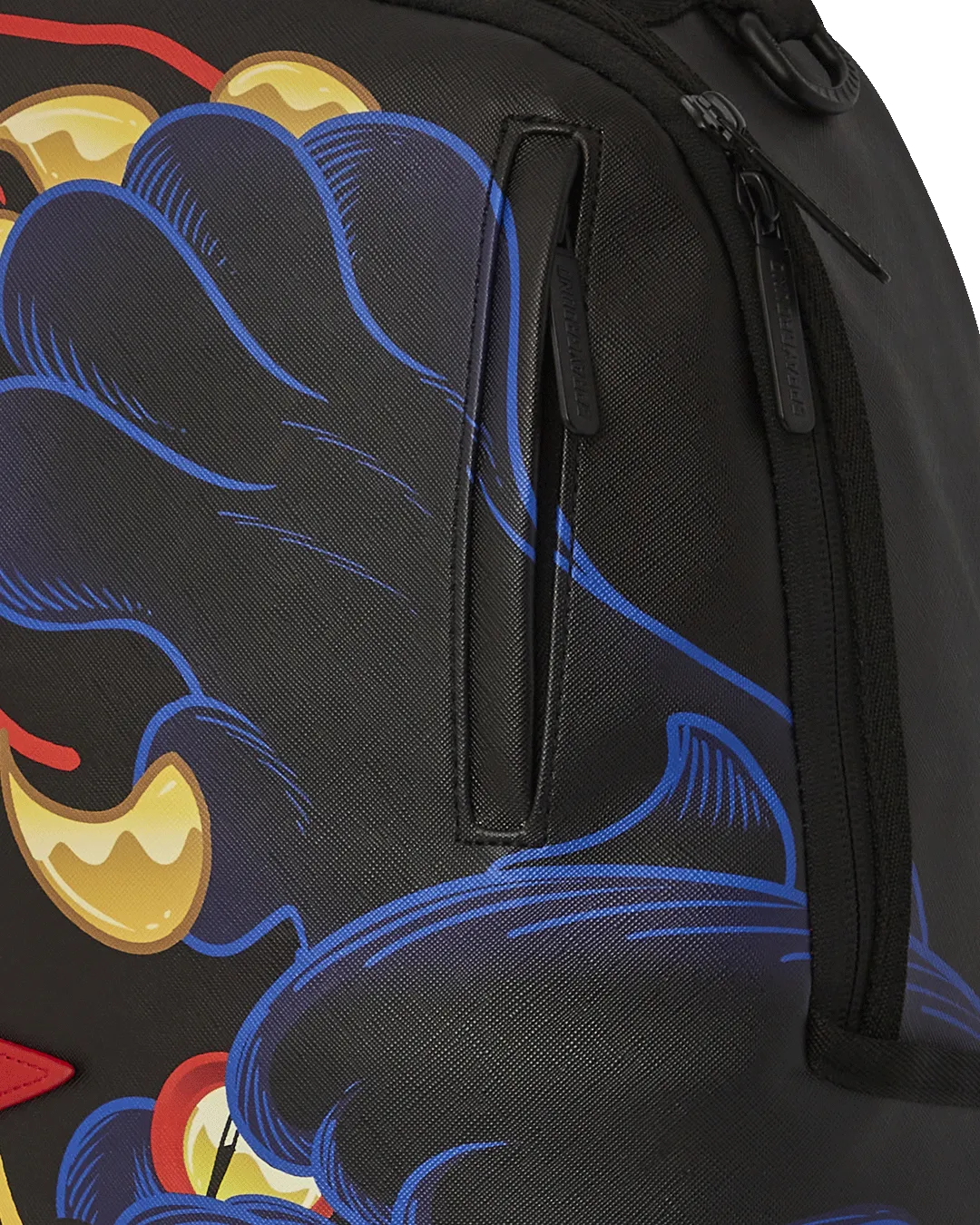 Dimensions: 18″ x 6″ x 11.5″ ? Front zipper pocket ? Side pockets ? Zippered Stash pocket ? Separate velour sunglass compartment ? Ergonomic mesh back padding ? Adjustable Straps for custom sizing ? Gold zippers with metal hardware ? Metal “Sprayground Authentic” badge ? Slide through back sleeve connects to carry-on luggage to free your hands