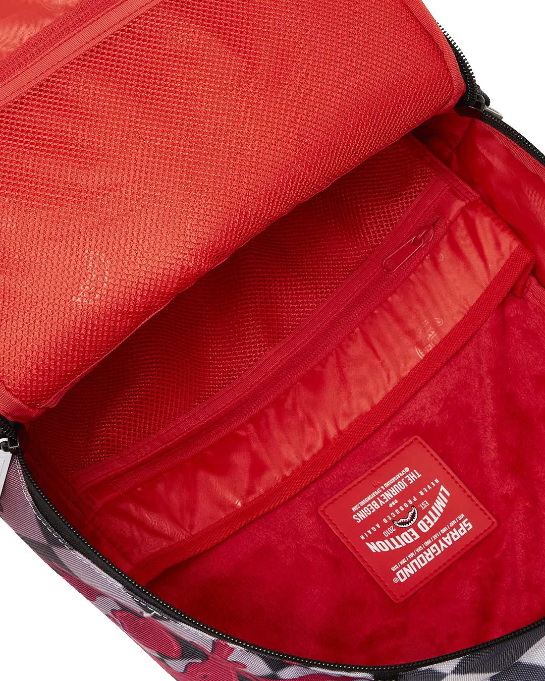 Dimensions: 18″ x 6″ x 11.5″ ? Front zipper pocket ? Side pockets ? Zippered Stash pocket ? Separate velour sunglass compartment ? Ergonomic mesh back padding ? Adjustable Straps for custom sizing ? Gold zippers with metal hardware ? Metal “Sprayground Authentic” badge ? Slide through back sleeve connects to carry-on luggage to free your hands