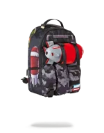Dimensions: 18″ x 6″ x 11.5″ ? Front zipper pocket ? Side pockets ? Zippered Stash pocket ? Ergonomic mesh back padding ? Adjustable Straps for custom sizing ? Nylon Zippers with Metal Hardware ? Metal “Sprayground Authentic” badge ? Slide through back sleeve connects to Carry on luggage to free your hands ? comes with a plush toy rocket launcher