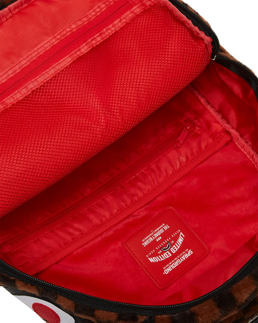 Dimensions: 18″ x 6″ x 11.5″ ? Front zipper pocket ? Side pockets ? Zippered Stash pocket ? Separate velour sunglass compartment ? Ergonomic mesh back padding ? Adjustable Straps for custom sizing ? Gold zippers with metal hardware ? Metal “Sprayground Authentic” badge ? Slide through back sleeve connects to carry-on luggage to free your hands