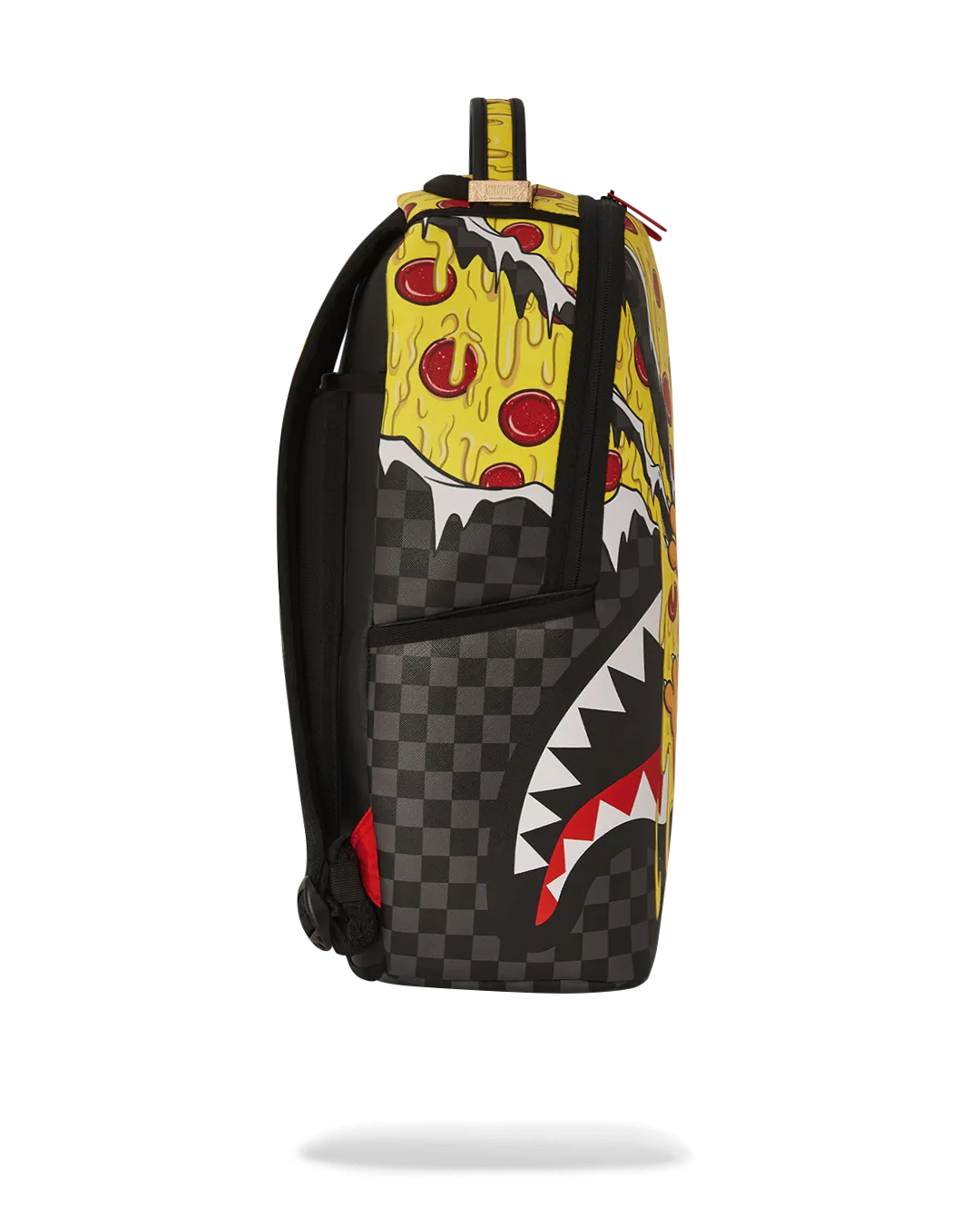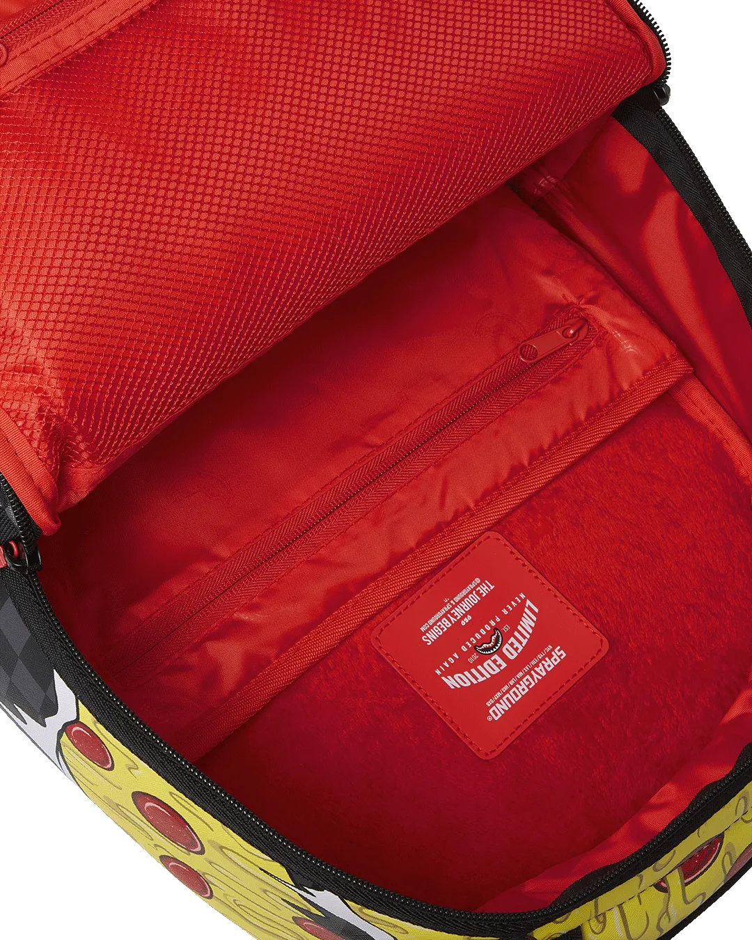 Dimensions: 18″ x 6″ x 11.5″ ? Front zipper pocket ? Side pockets ? Zippered Stash pocket ? Separate velour sunglass compartment ? Ergonomic mesh back padding ? Adjustable Straps for custom sizing ? Gold zippers with metal hardware ? Metal “Sprayground Authentic” badge ? Slide through back sleeve connects to carry-on luggage to free your hands