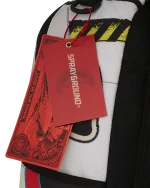 Dimensions: 18″ x 6″ x 11.5″ ? Front zipper pocket ? Side pockets ? Zippered Stash pocket ? Separate velour sunglass compartment ? Ergonomic mesh back padding ? Adjustable Straps for custom sizing ? Gold zippers with metal hardware ? Metal “Sprayground Authentic” badge ? Slide through back sleeve connects to carry-on luggage to free your hands