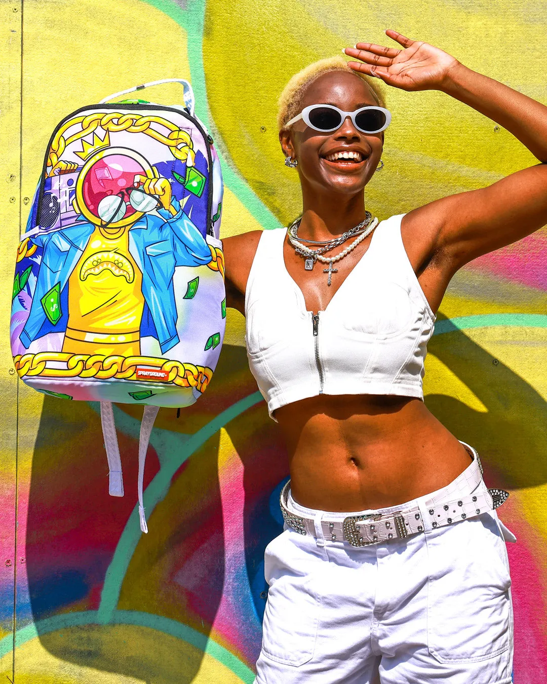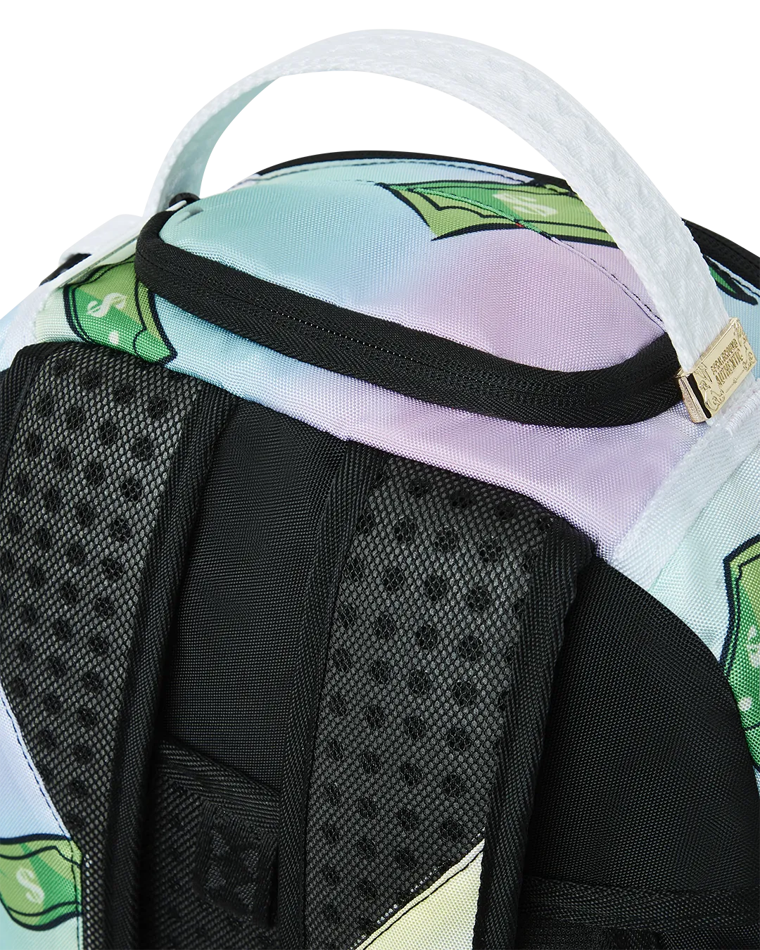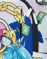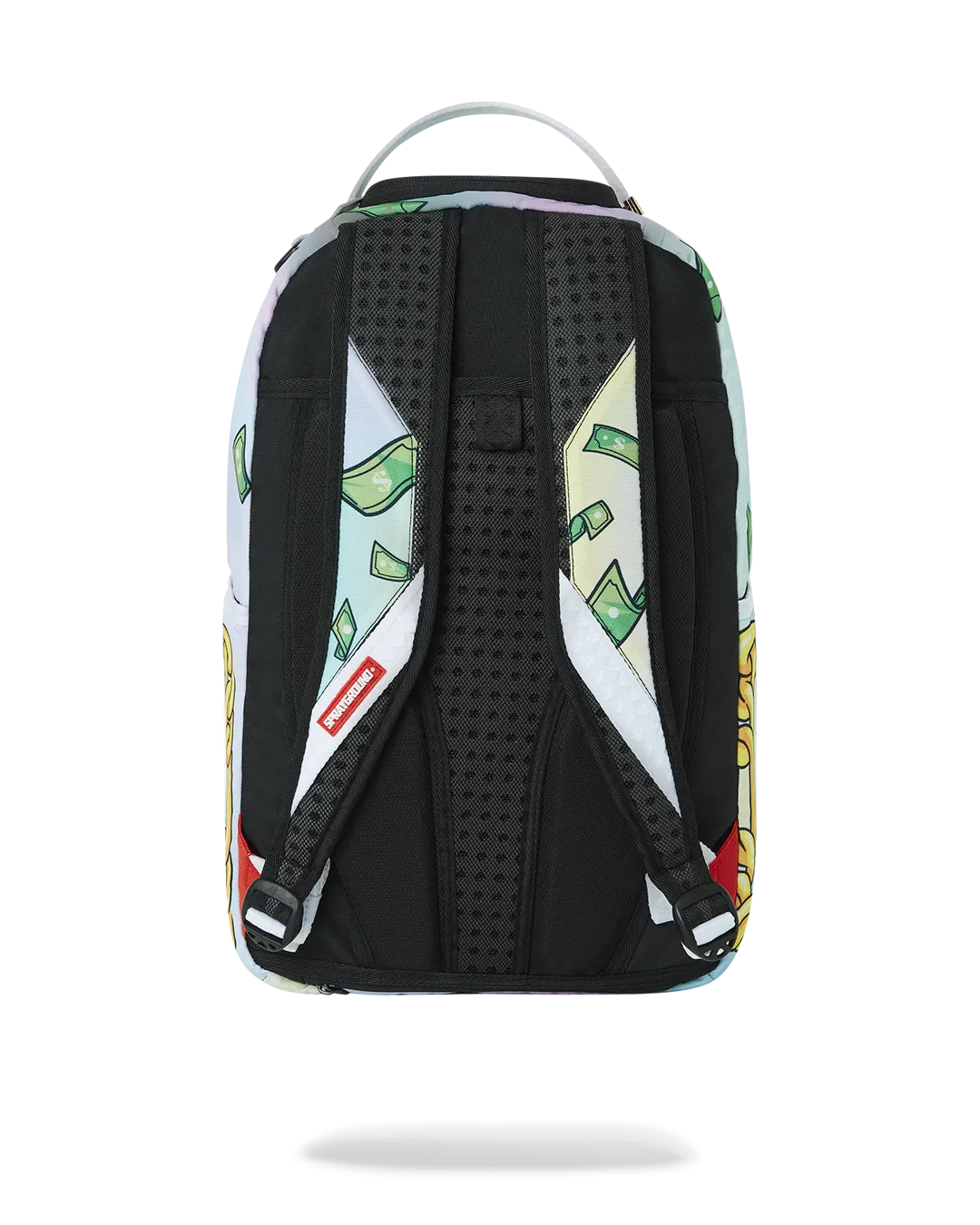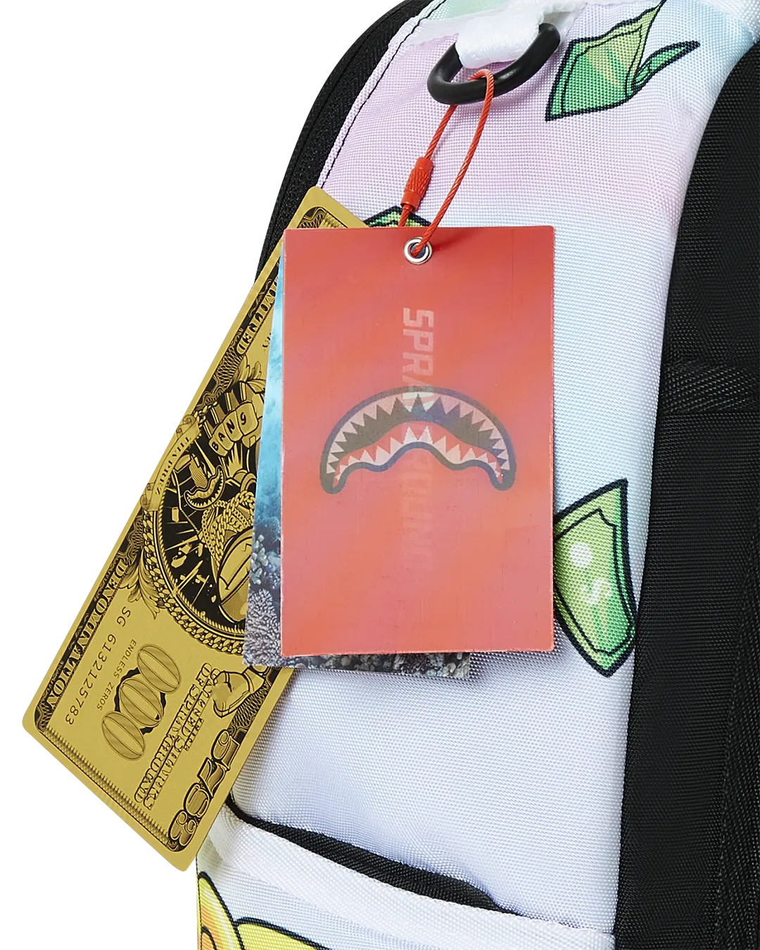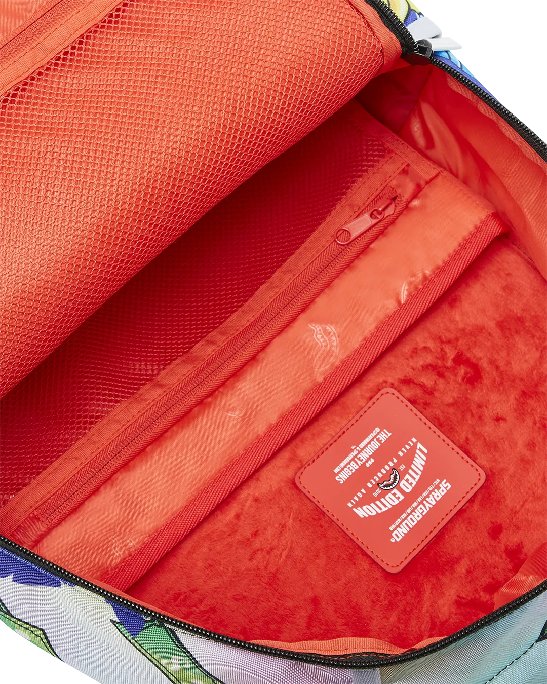 Dimensions: 18″ x 6″ x 11.5″ ? Front zipper pocket ? Side pockets ? Zippered Stash pocket ? Separate velour sunglass compartment ? Ergonomic mesh back padding ? Adjustable Straps for custom sizing ? Gold zippers with metal hardware ? Metal “Sprayground Authentic” badge ? Slide through back sleeve connects to carry-on luggage to free your hands