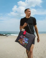 GLOBAL MOGUL UNLIMITED MILES PACKABLE BEACH MAT BLANKET WATER RESISTANT CONVERTIBLE TOTE