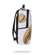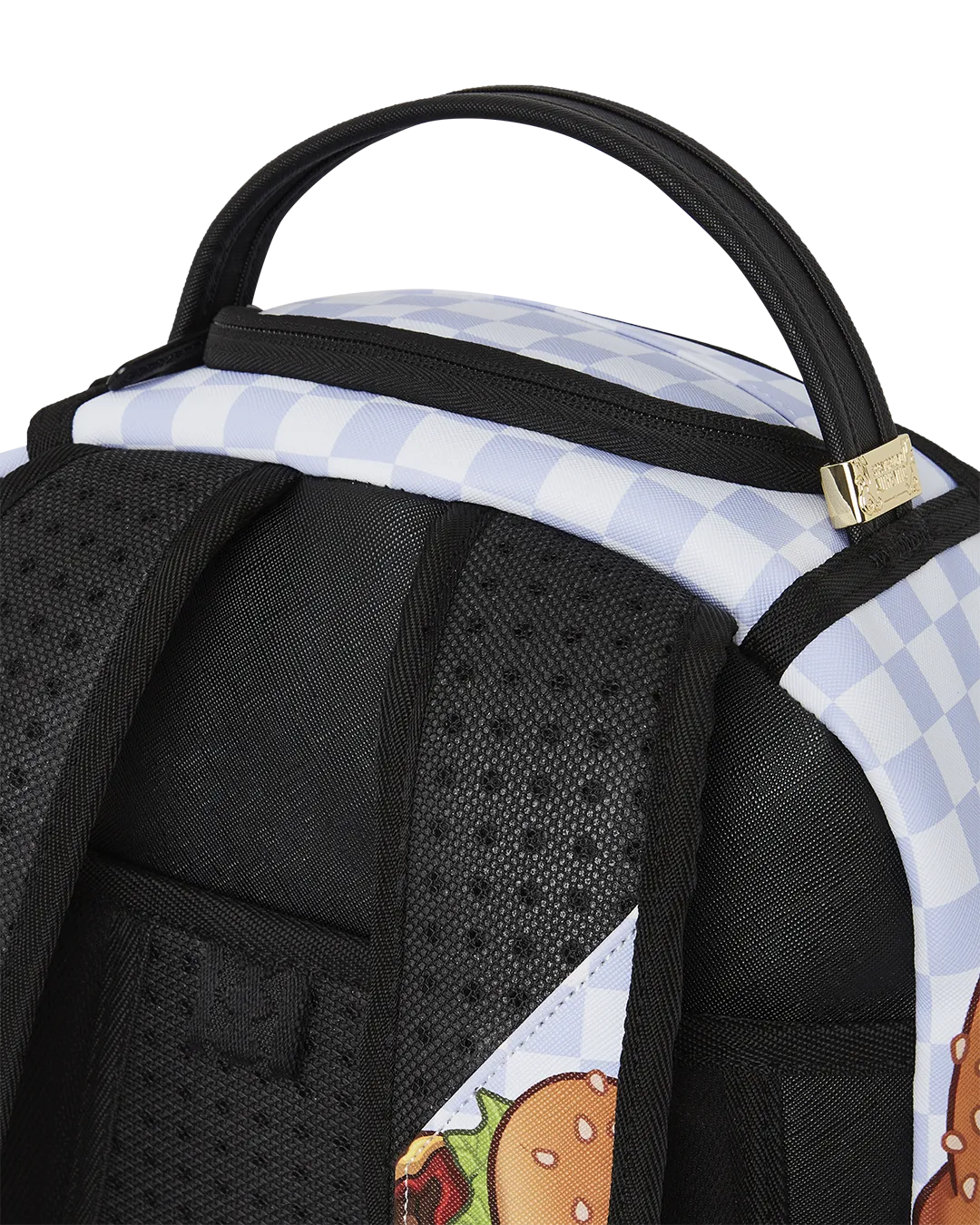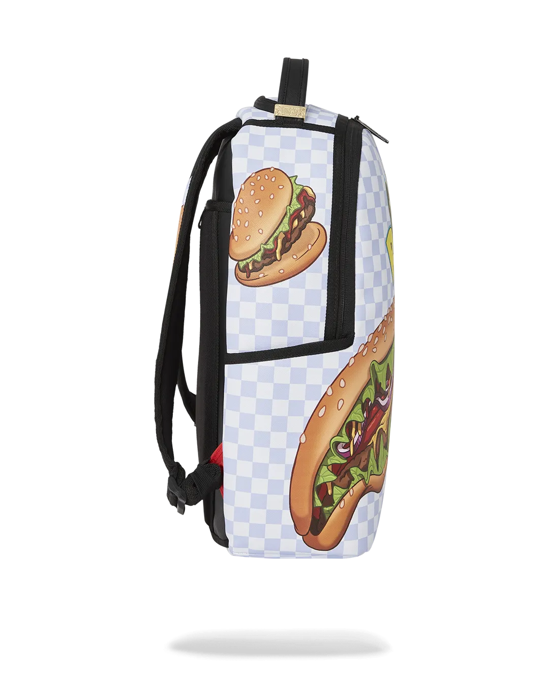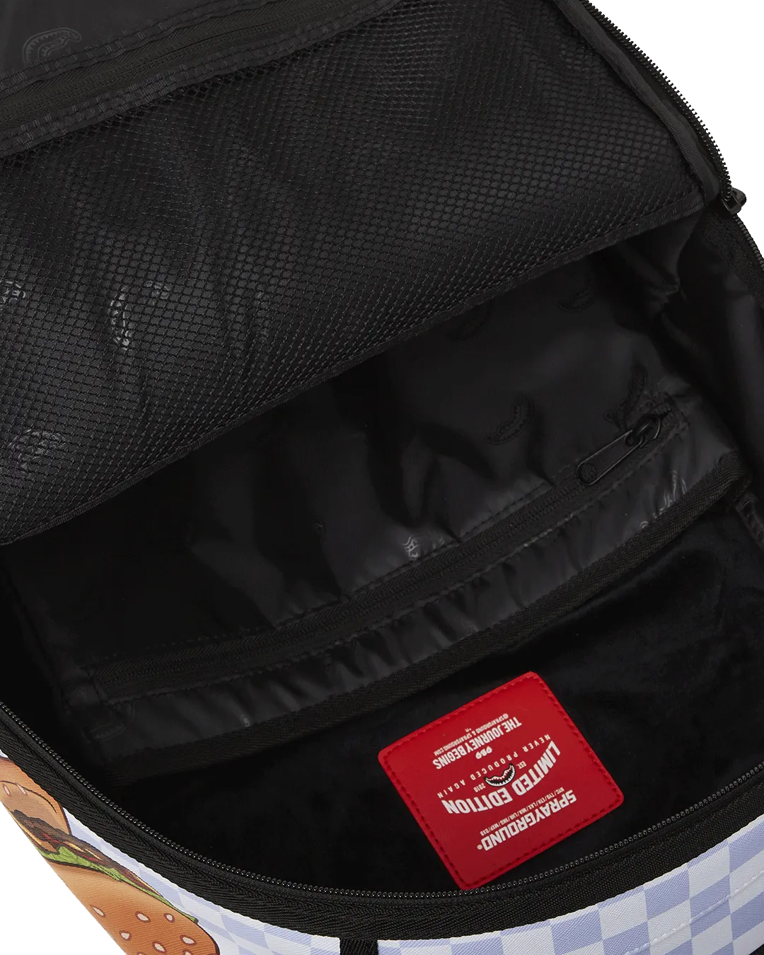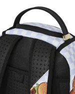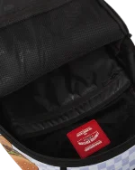 Dimensions: 18″ x 6″ x 11.5″ ? Front zipper pocket ? Side pockets ? Zippered Stash pocket ? Separate velour sunglass compartment ? Ergonomic mesh back padding ? Adjustable Straps for custom sizing ? Gold zippers with metal hardware ? Metal “Sprayground Authentic” badge ? Slide through back sleeve connects to carry-on luggage to free your hands