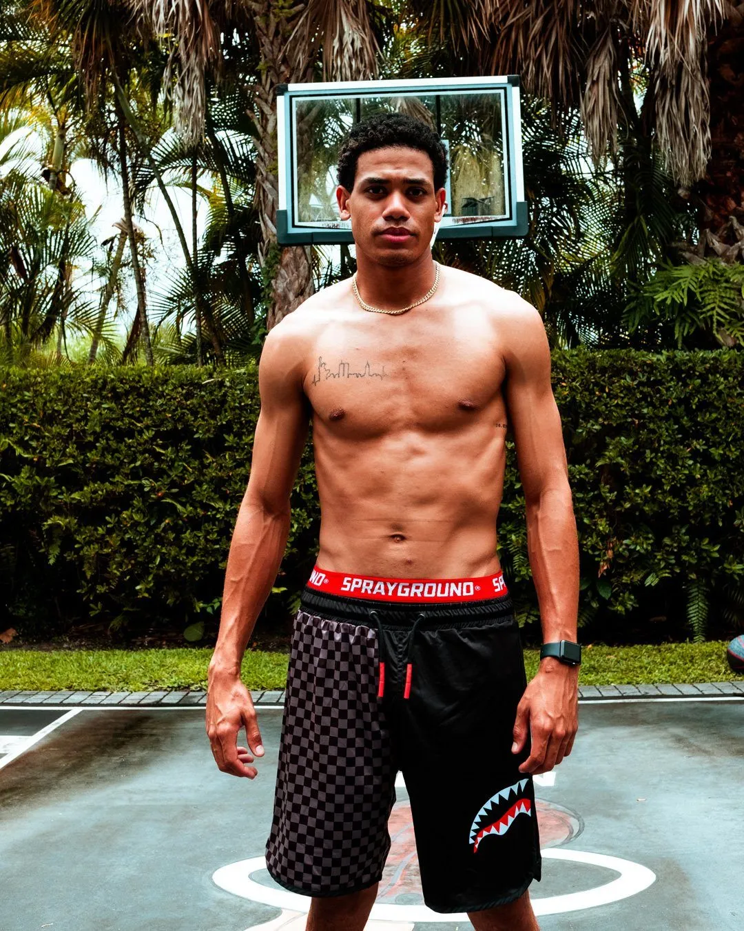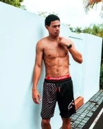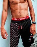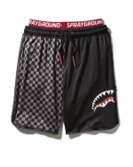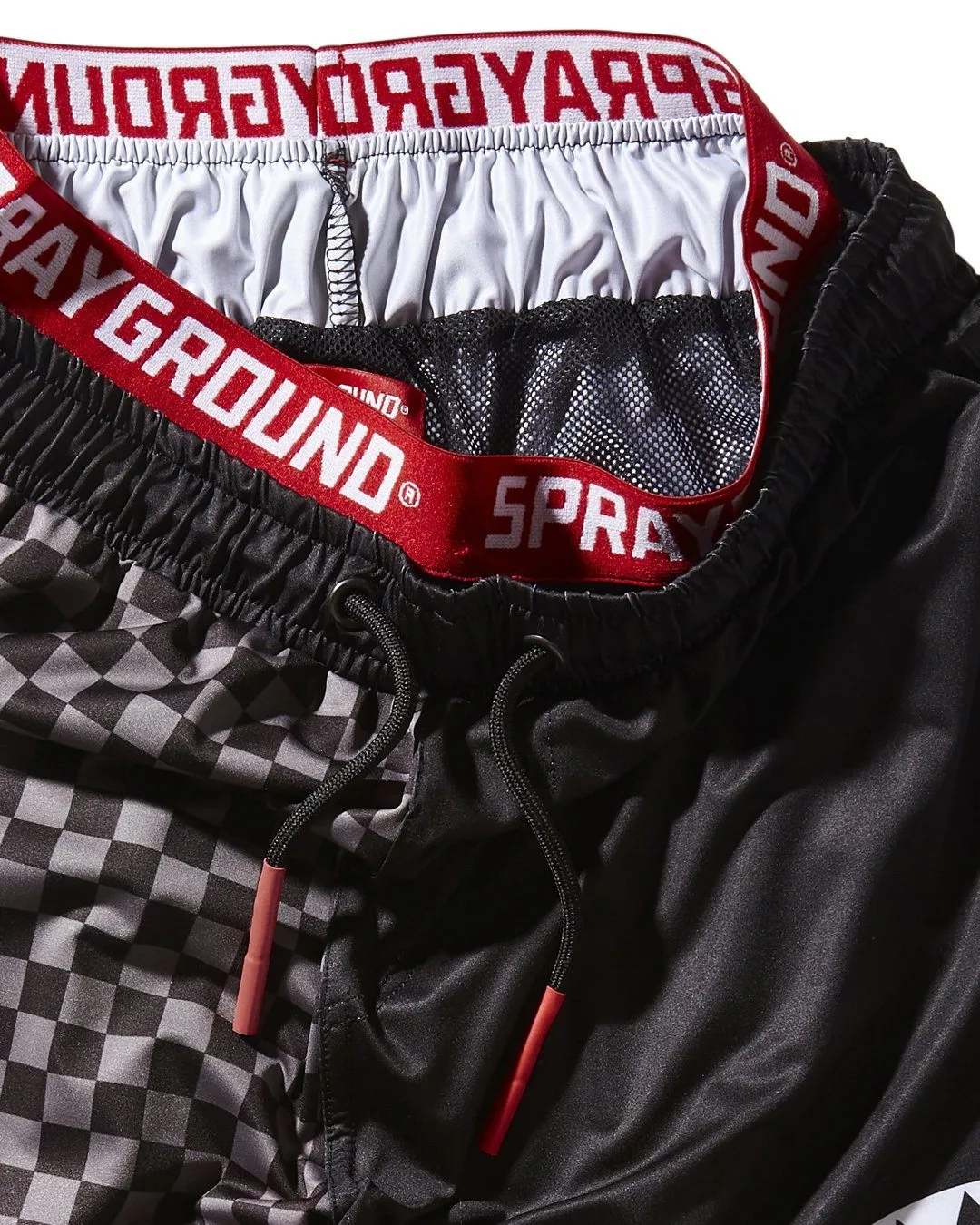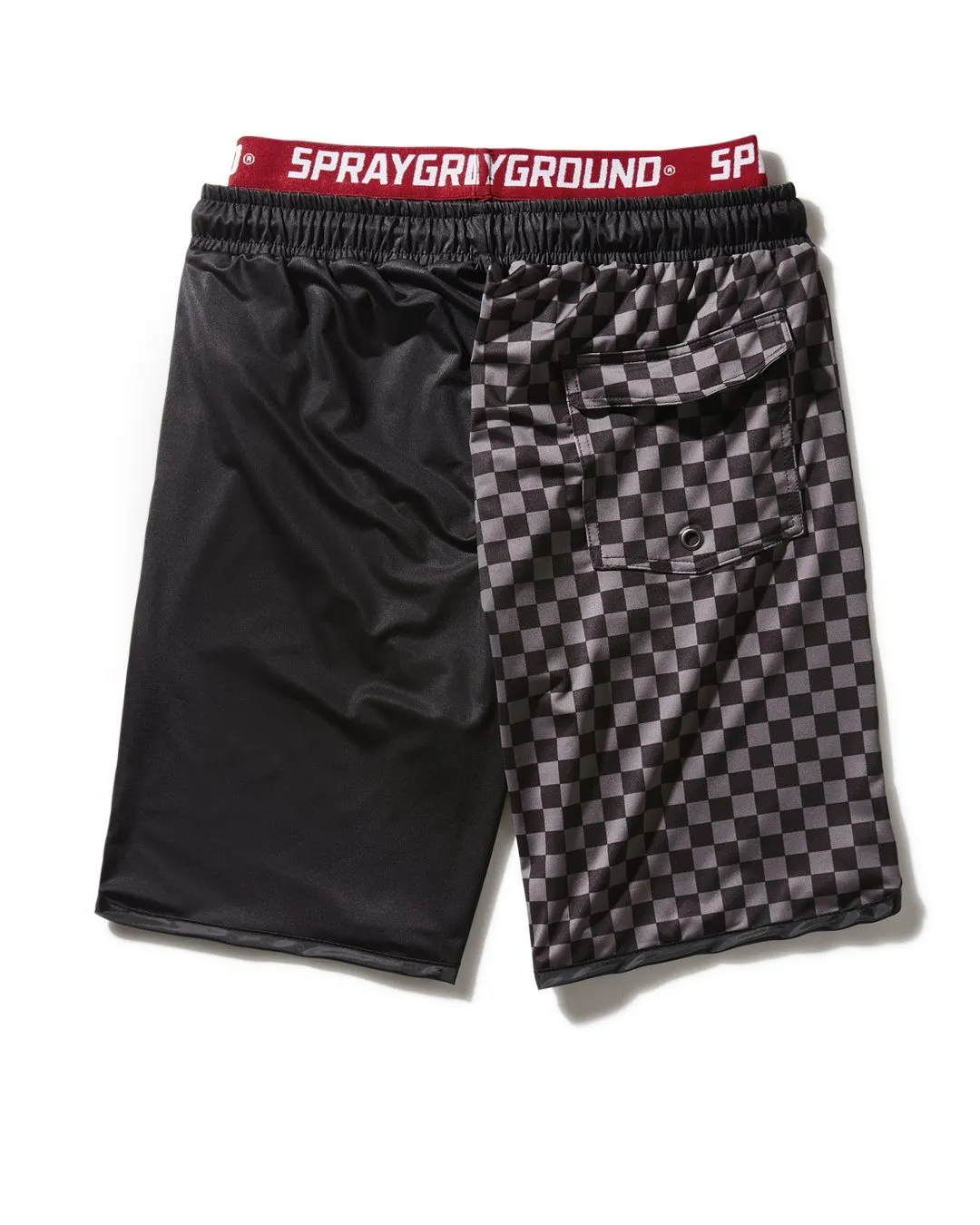 GREY CHECKERED SPLIT CORTO SWIM TRUNKS